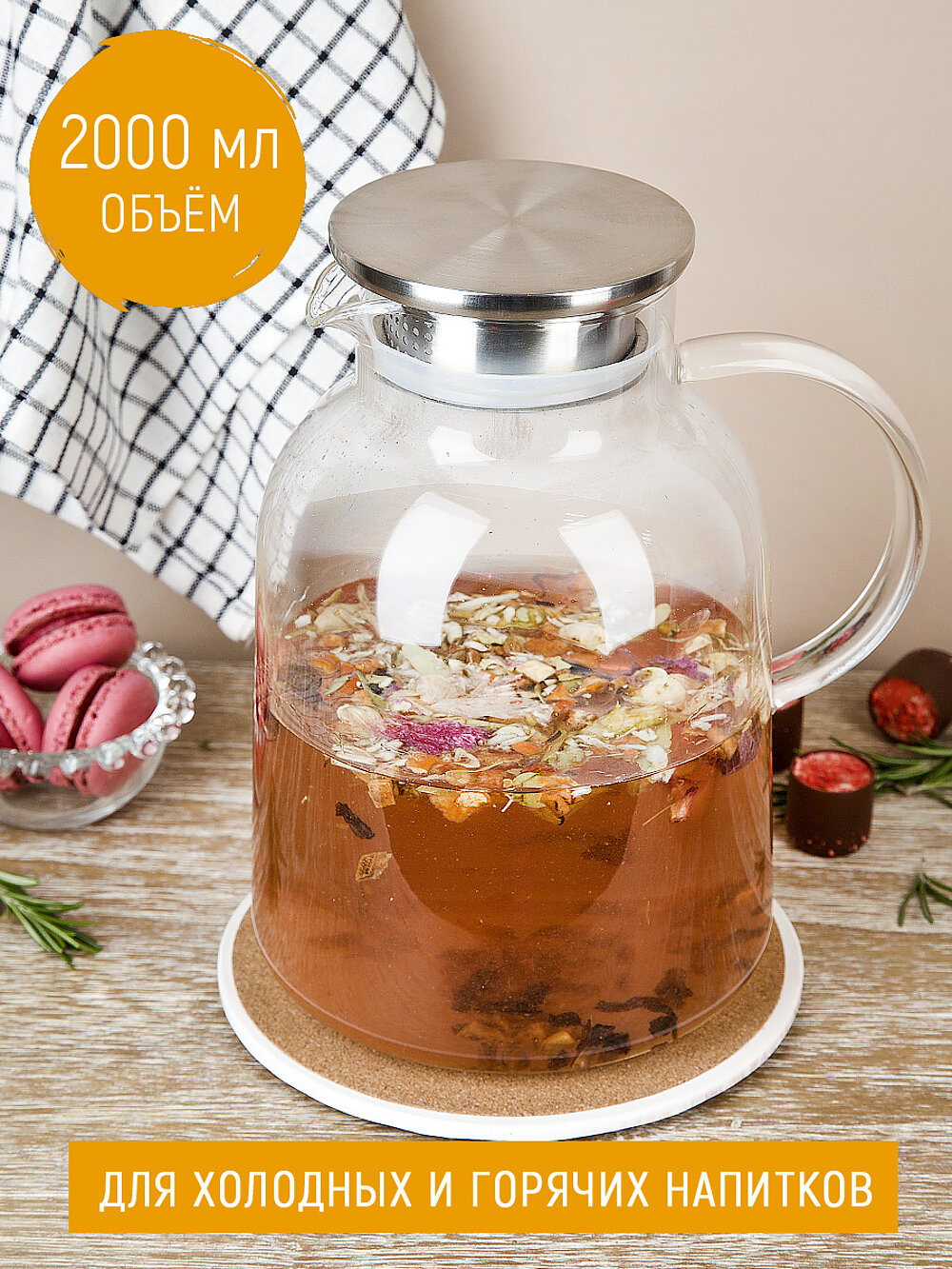 Кувшин c крышкой-фильтром Nouvelle 2000мл, стекло интересное: