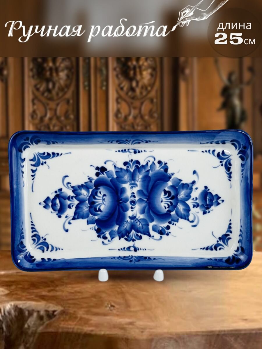 Поднос "Полянка", 25 см. Галактика Гжель. Ручная работа. Фарфор. интересное: