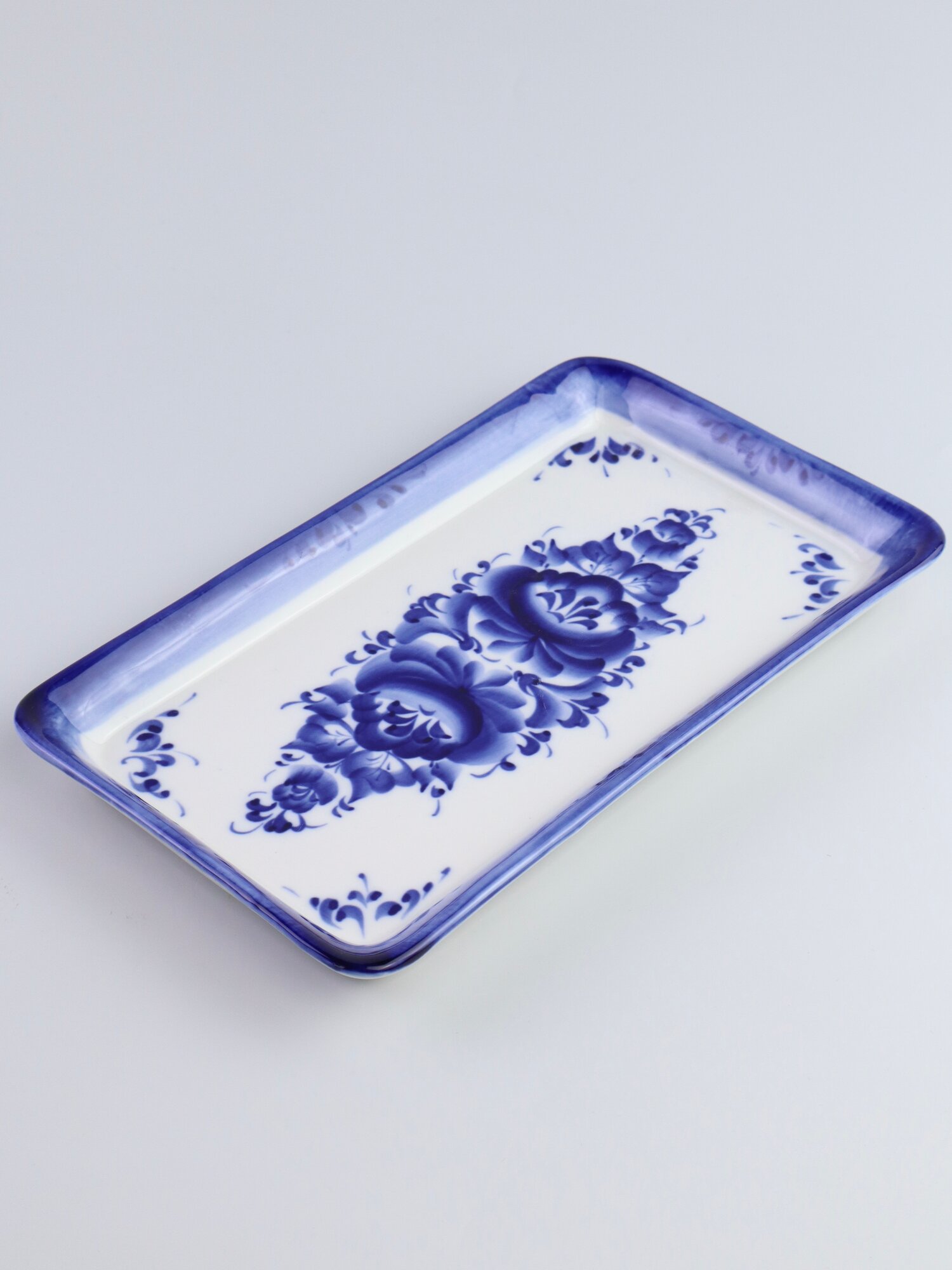 Купить Поднос "Полянка", 25 см. Галактика Гжель. Ручная работа. Фарфор.