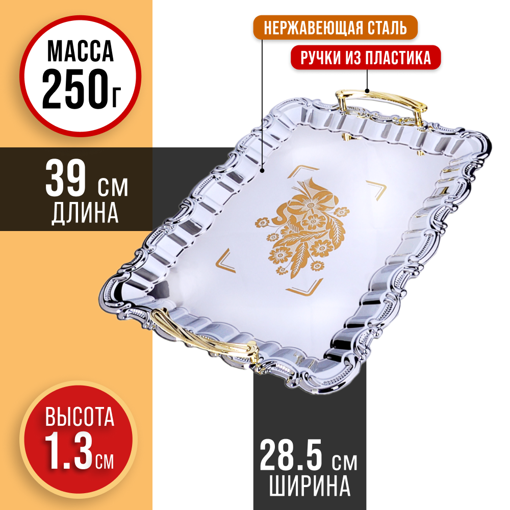 | Дополнительная информация | Набор: 3 подноса разного размера. Поднос большой: 41 х 29 х 1,7 см, дно: 24 х 21 см. Поднос средний: 32,5 х 23,5 х 1,5 см, дно: 26 х 17 см. Поднос малый: 26,5 х 19 см х 1,3 см, дно: 21 х 14 см. |