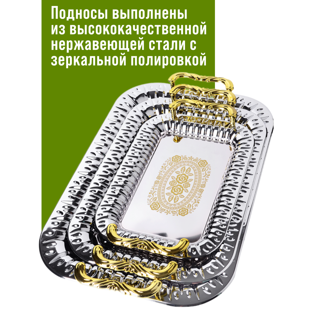 Набор подносов 3 пр.зол.руч нер/ст MB 40447 KSMB-40447