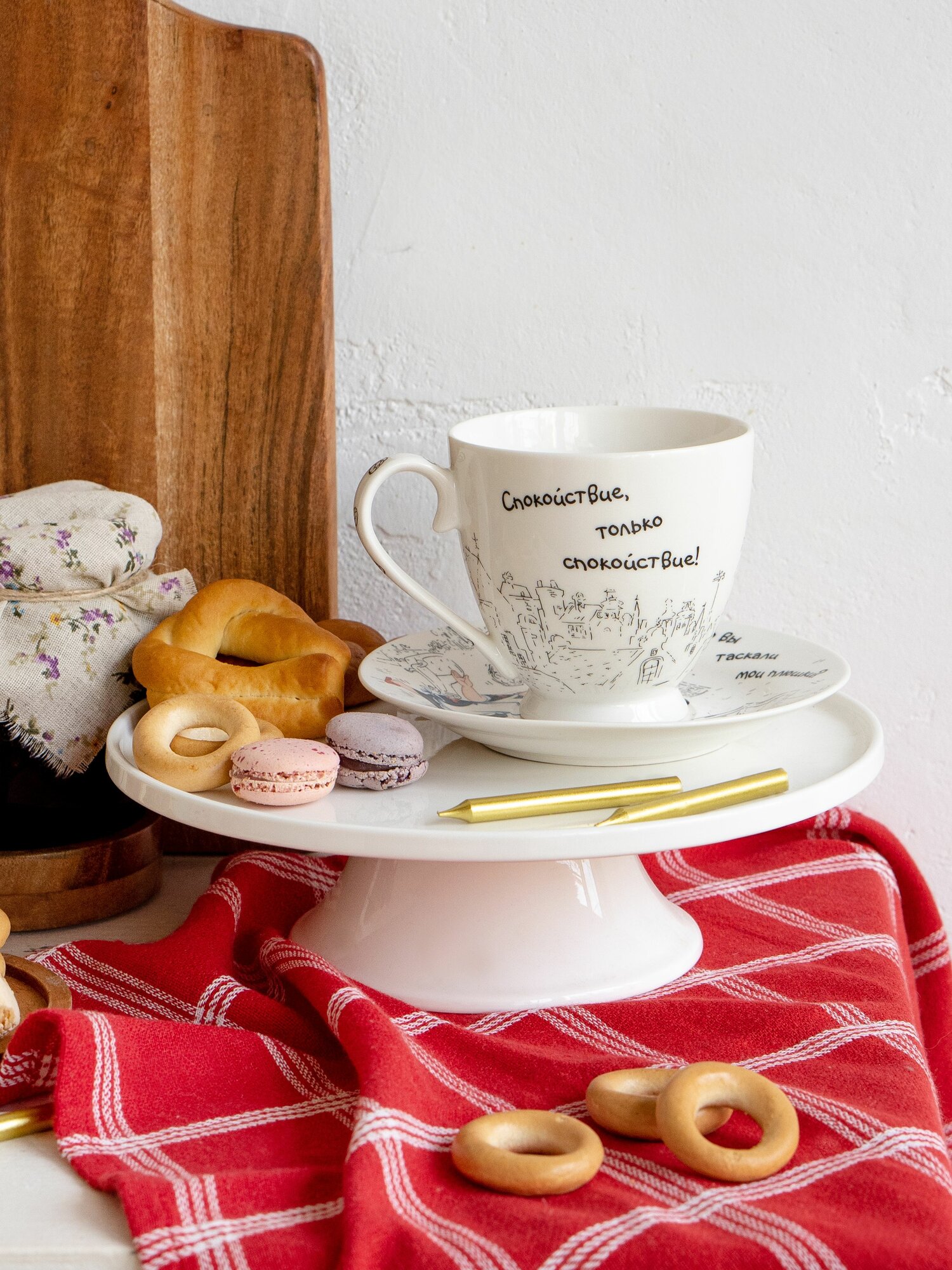 Чайная пара фарфор "Малыш и Карлсон" 440 мл. в подарочной упаковке, чашка с блюдцем, чайный набор на 1 персону. Коралл. интересное: