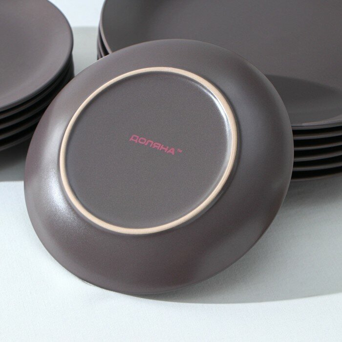 Набор тарелок Доляна «Пастель», 18 предметов: 6 тарелок d=19 см, 6 тарелок d=27 см, 6 мисок d=19 см, керамика, цвет коричневый