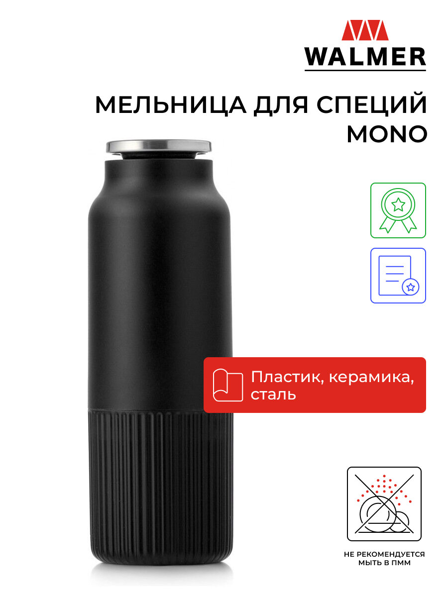 Мельница для перца Walmer MONO, цвет чёрный 5.7 x 16.5 см (W05201516) интересное: