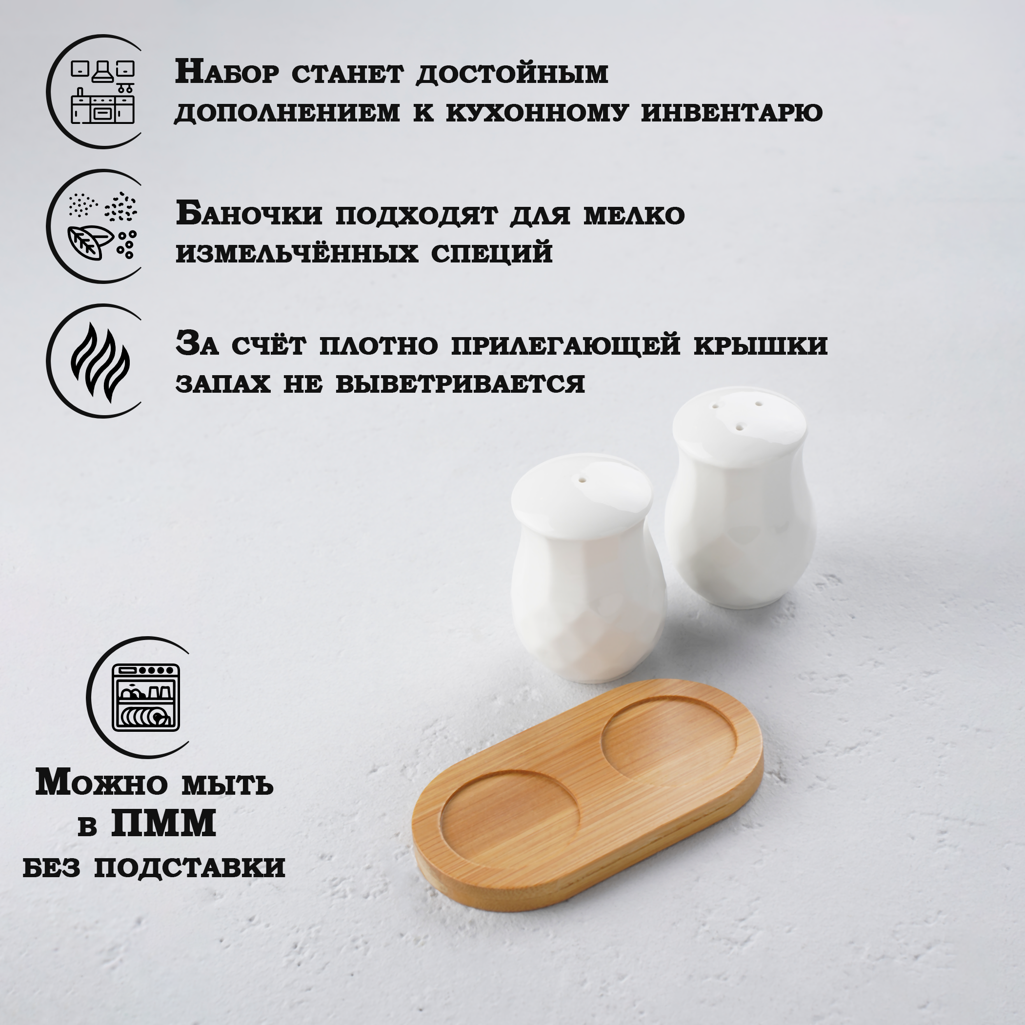 Набор для специй на дерев подставке 2 шт "Bella Tenero" солонка, перечница интересное: