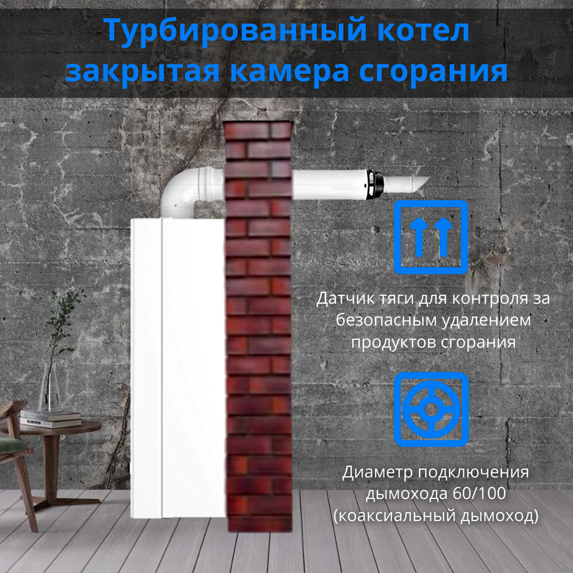 | Диаметр коаксиального дымохода | 60/100 мм |