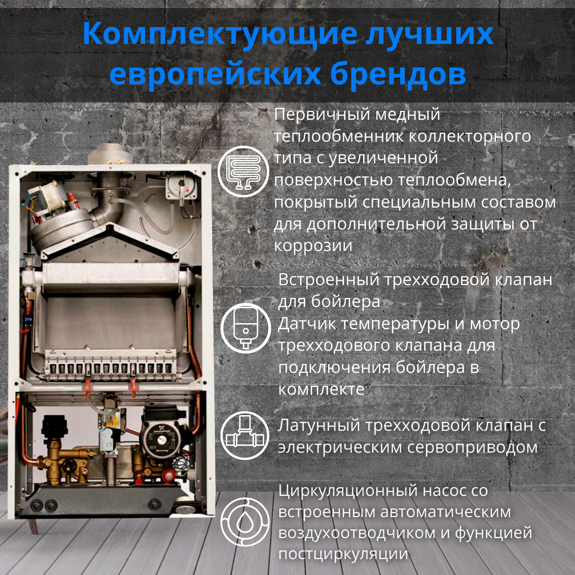 | Материал первичного теплообменника | медь |