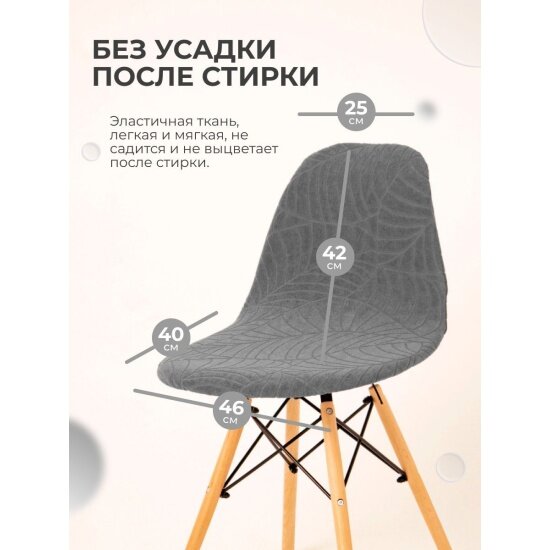 Чехол на стул со спинкой PROtect на модели Eames, Aspen, Giardino, 40х46 см, ткань Leaves, Светло-серый, 1 шт.