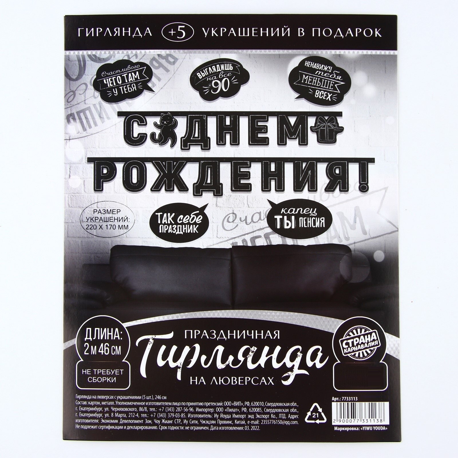 Купить Гирлянда с украшениями 5 шт. "С Днем рождения!", черно-белый, длина 246 см