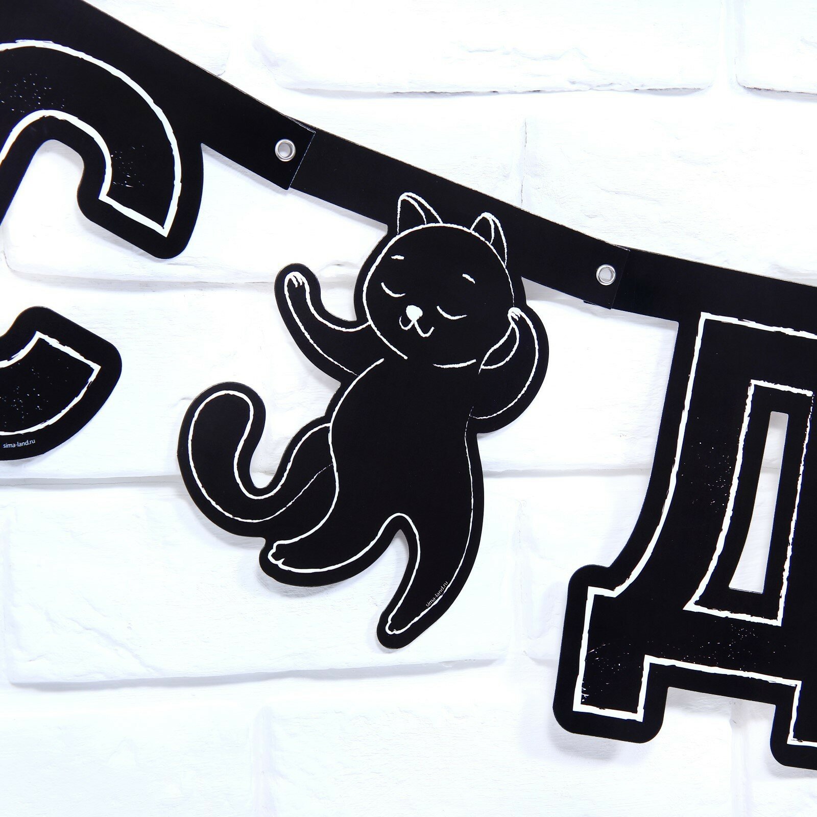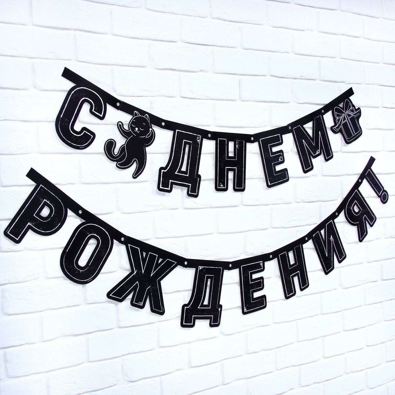 Гирлянда с украшениями 5 шт. "С Днем рождения!", черно-белый, длина 246 см интересное: