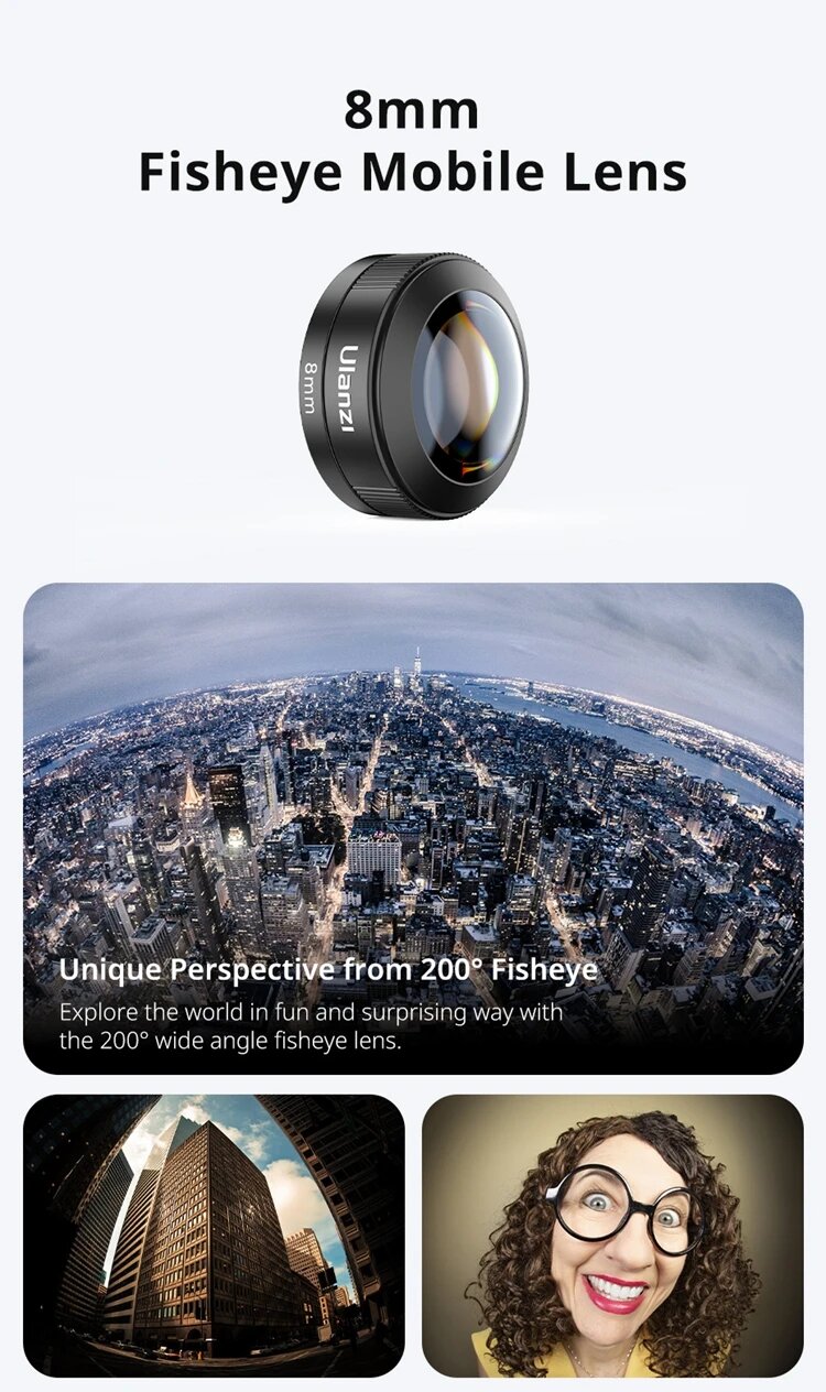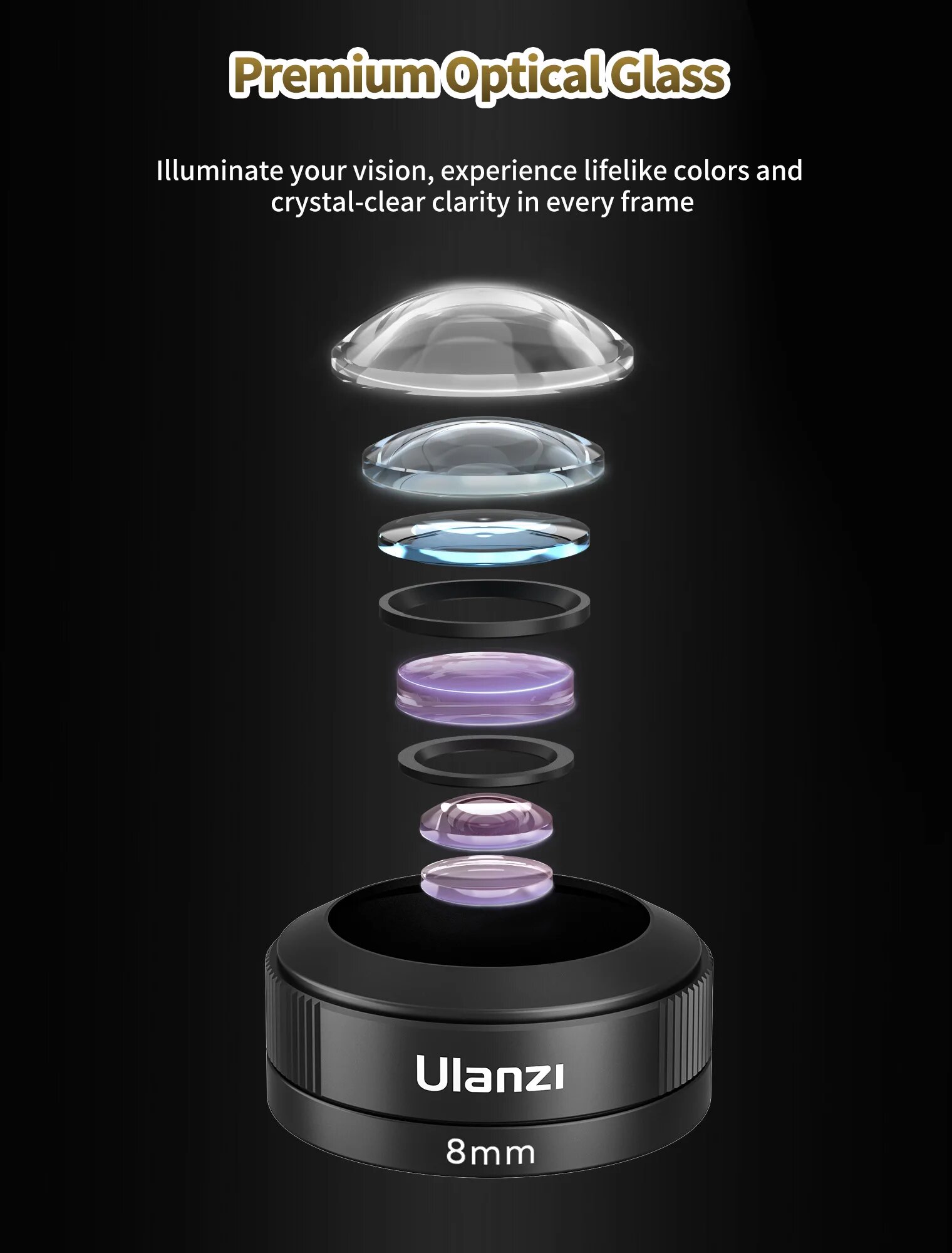 Комплект телефонных линз Ulanzi с зажимом 0,5X, сверхширокоугольный макрообъектив, внешний объектив «рыбий глаз» для съемки iPhone Android, Fisheye Lens