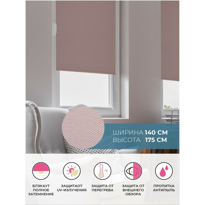 СохранитьРулонные шторы блэкаут Плайн Пыльная роза DECOFEST 140 см на 175 см, жалюзи на окна интересное: