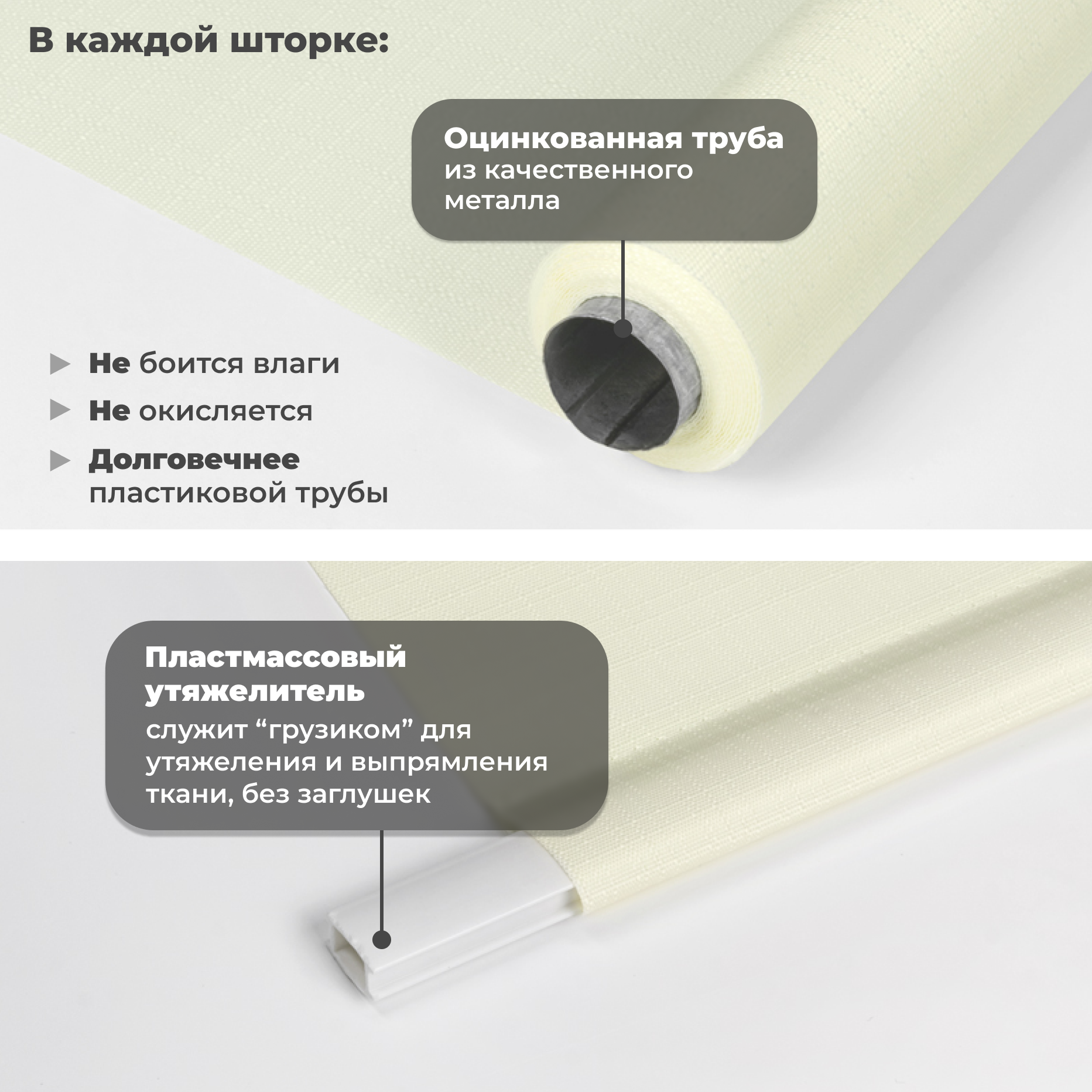| Комплектация | Рулонная штора на стальном оцинкованном валу 17 мм - 1 шт, утяжелитель пластиковый вшитый - 1шт, боковые кронштейны - 2шт, регулировочные кронштейны на откидную створку - 2 шт, площадки на двустороннем скотче для глухой и откидной створки окна - 2 шт, механизм управления на цепи 1 шт, ограничитель управления цепи - 1 шт, этикетка и инструкция - 1 шт. |