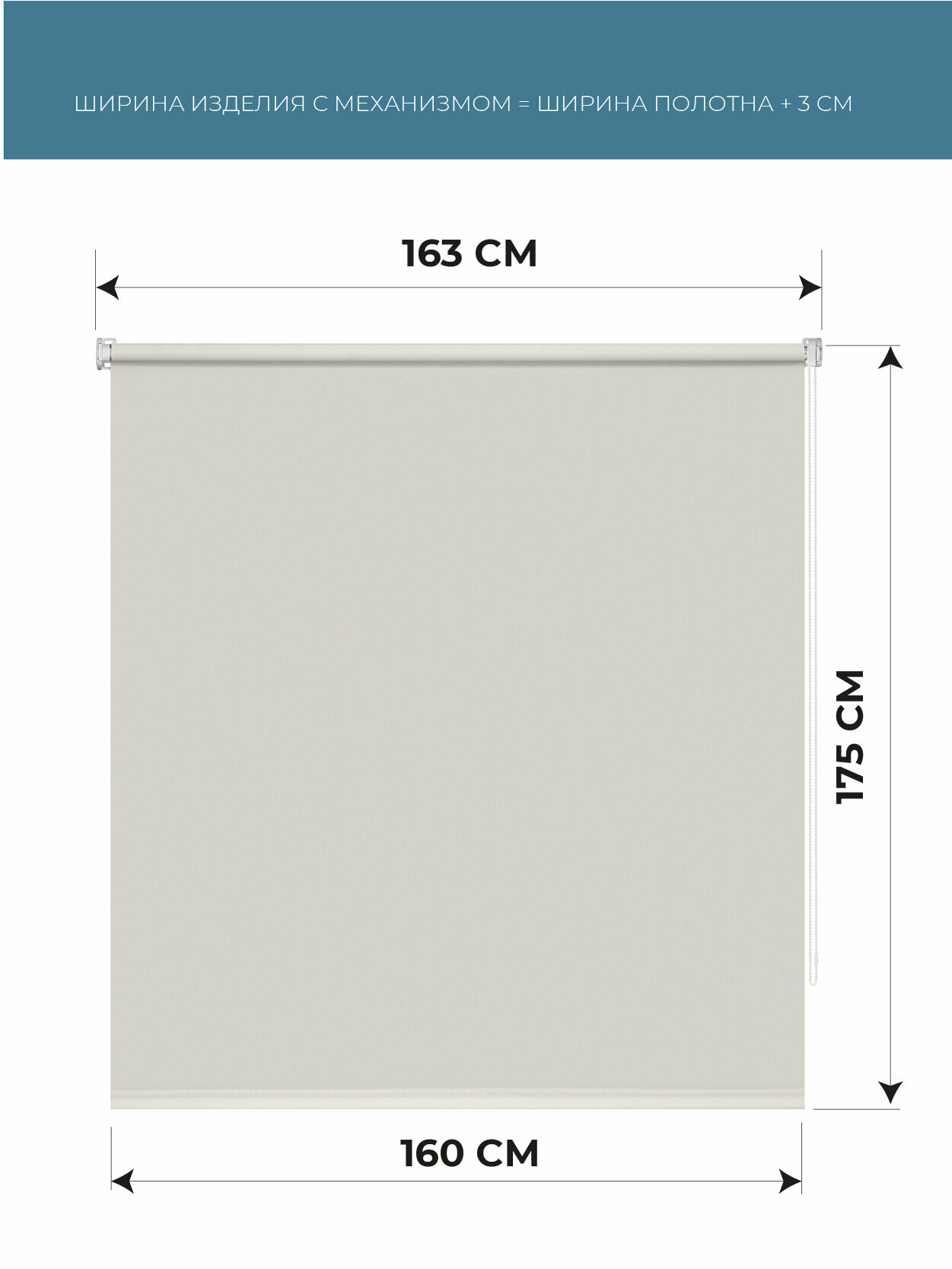 Рулонные шторы однотонные Плайн Морозный серый DECOFEST 160 см на 175 см, жалюзи на окна