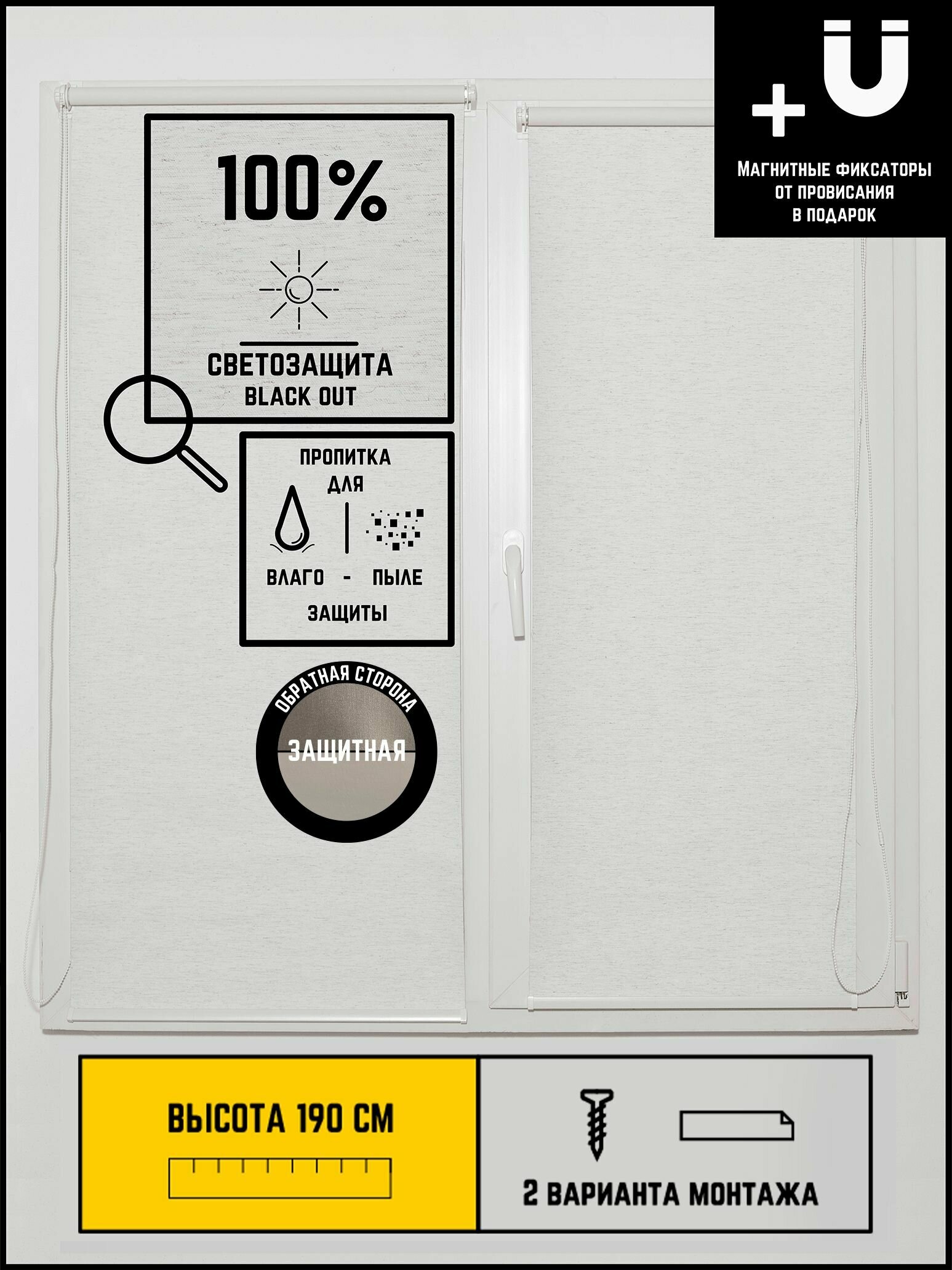 Рулонные шторы Белый блэкаут на окна без сверления 150 на 190