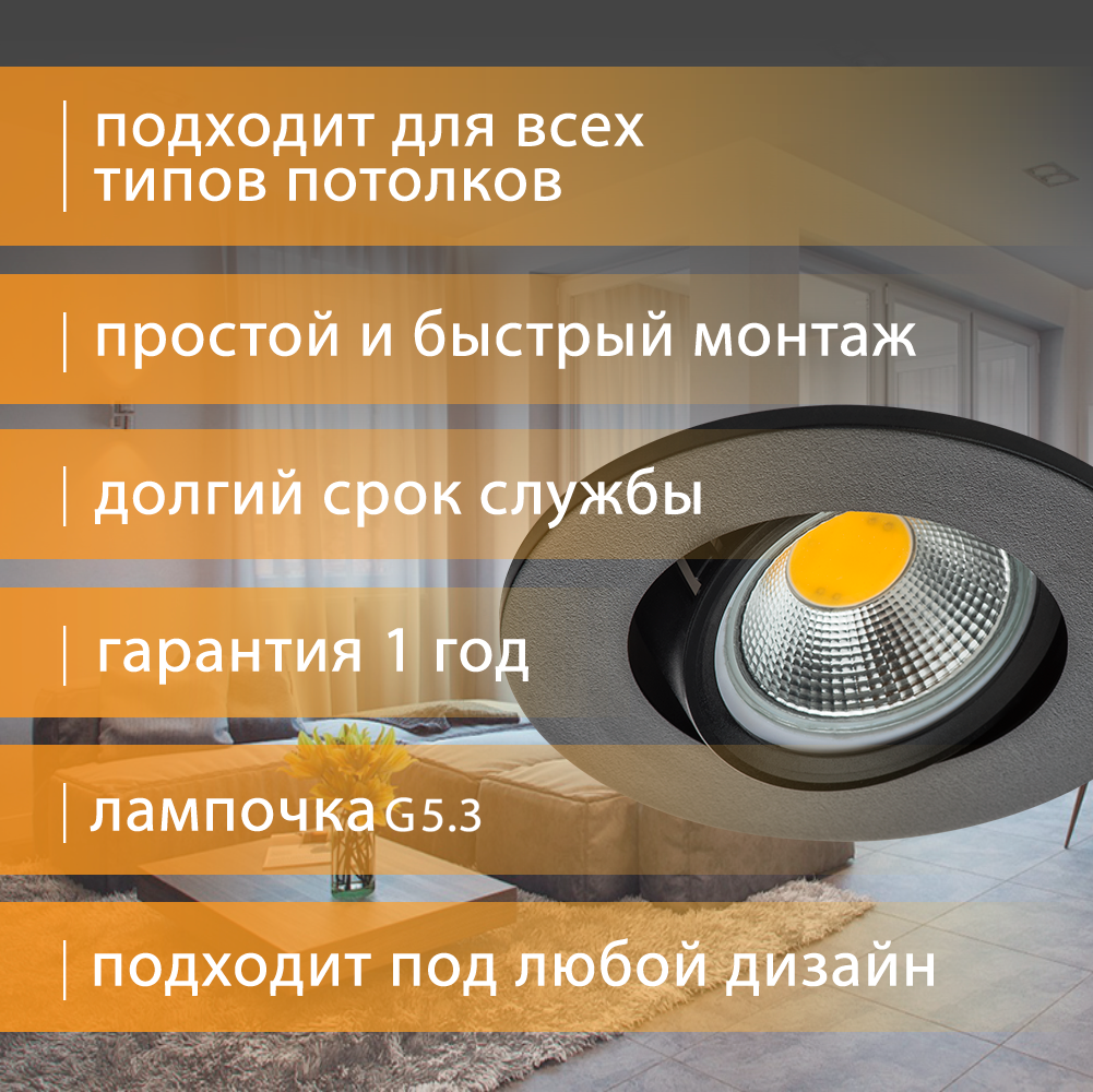 | Комплектация | Светильник - 1 шт., патрон G5.3 - 1 шт. |