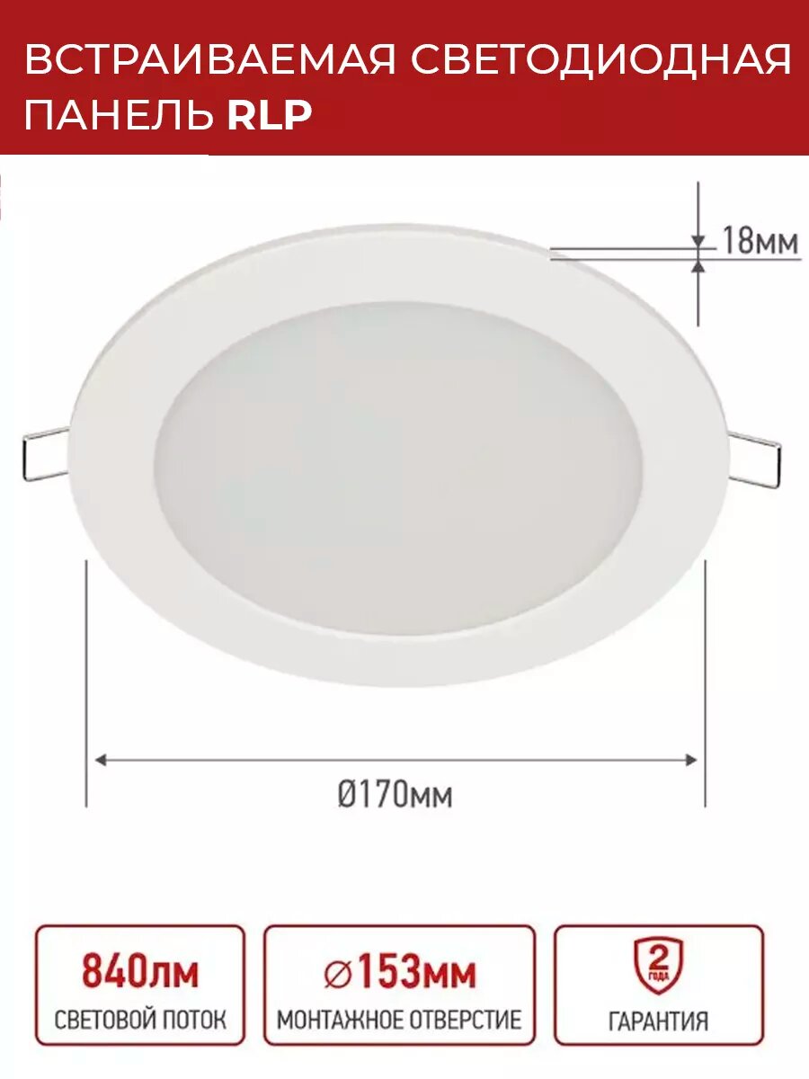 Светильник светодиодный RLP-eco 12Вт 4000К IP40 840лм 230В 170мм ДВО кругл. встраив. панель бел. IN HOME 4690612010007