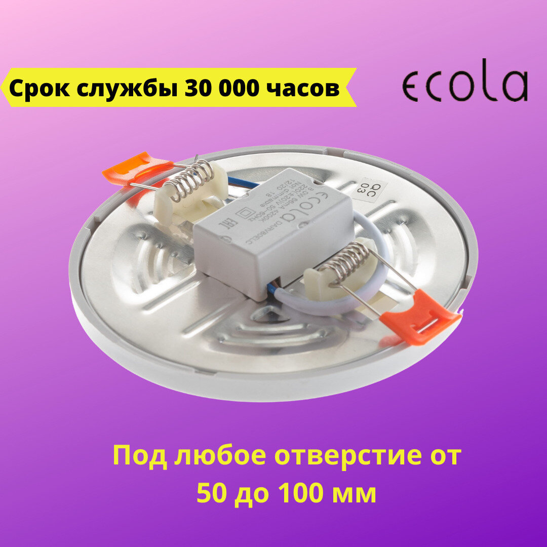 Светильник встраиваемый 8Вт 4200К круг d115мм под отверстие 50-100мм Ecola DARV80ELC