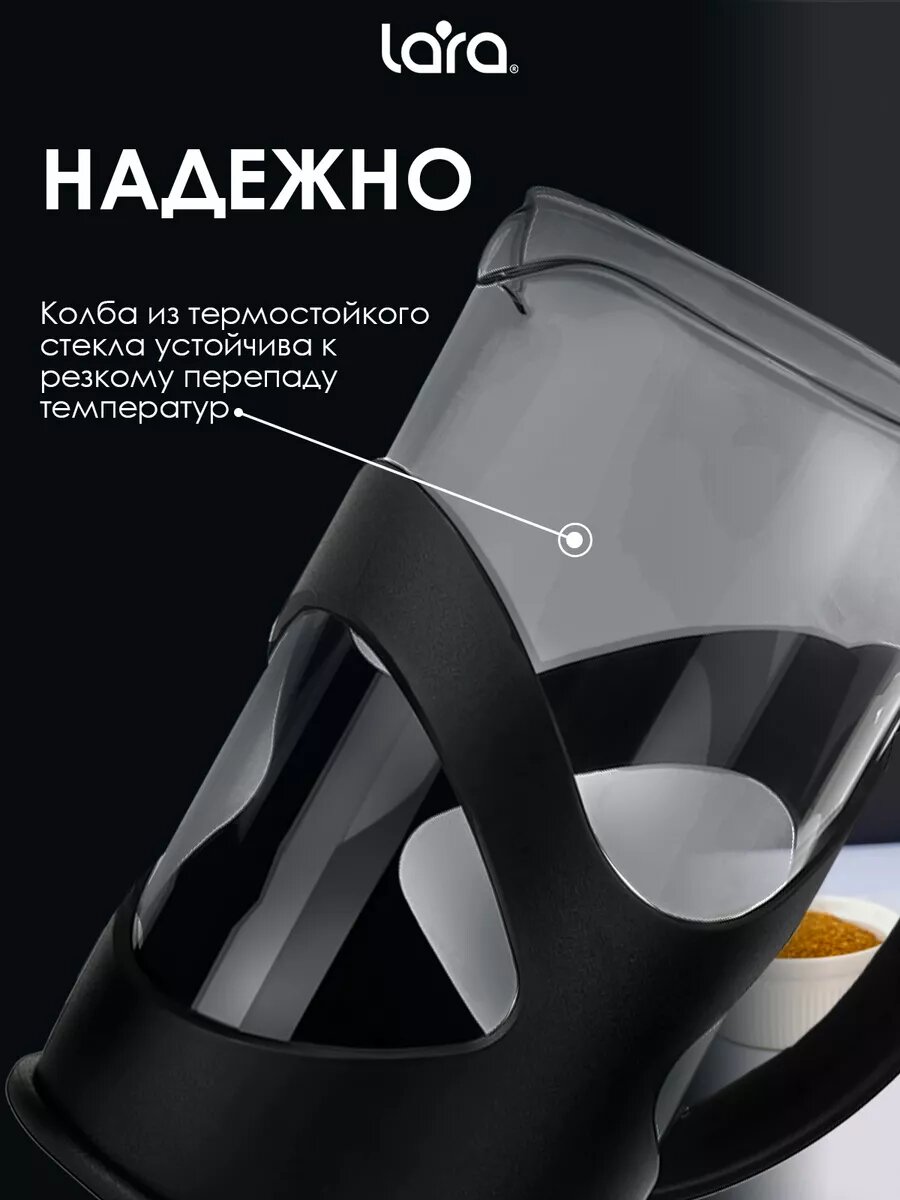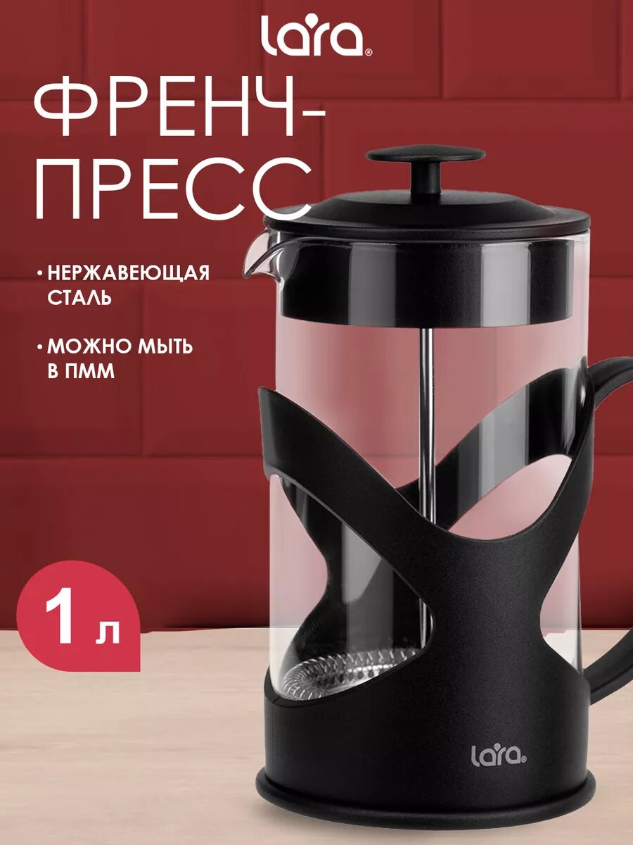 Френч-пресс LARA LR 06-50-1000 (1 л),1 литр, 1000 мл, заварочный чайник для чая, кофе, чайник, кофейник, кухонная утварь