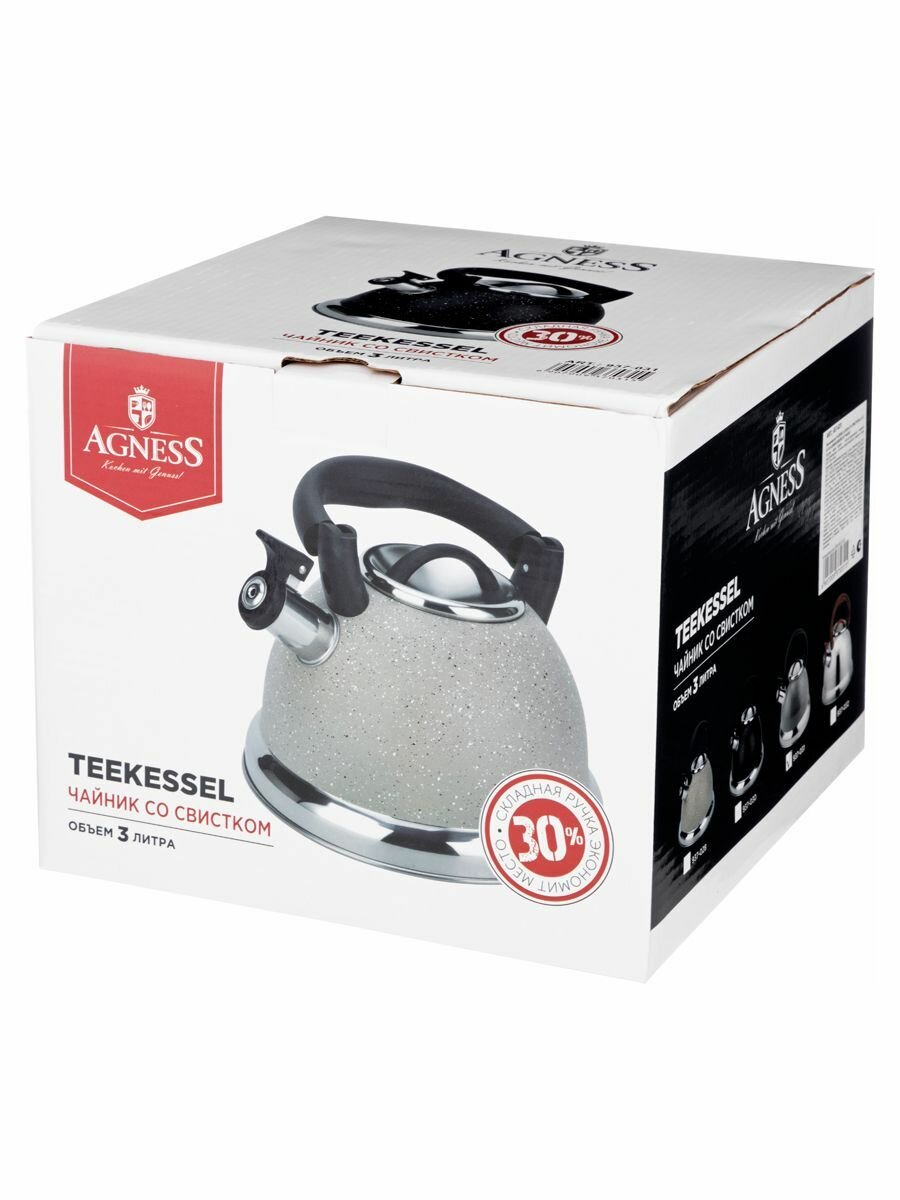 Чайник для плиты Agness со свистком и складывающейся ручкой, 3 л