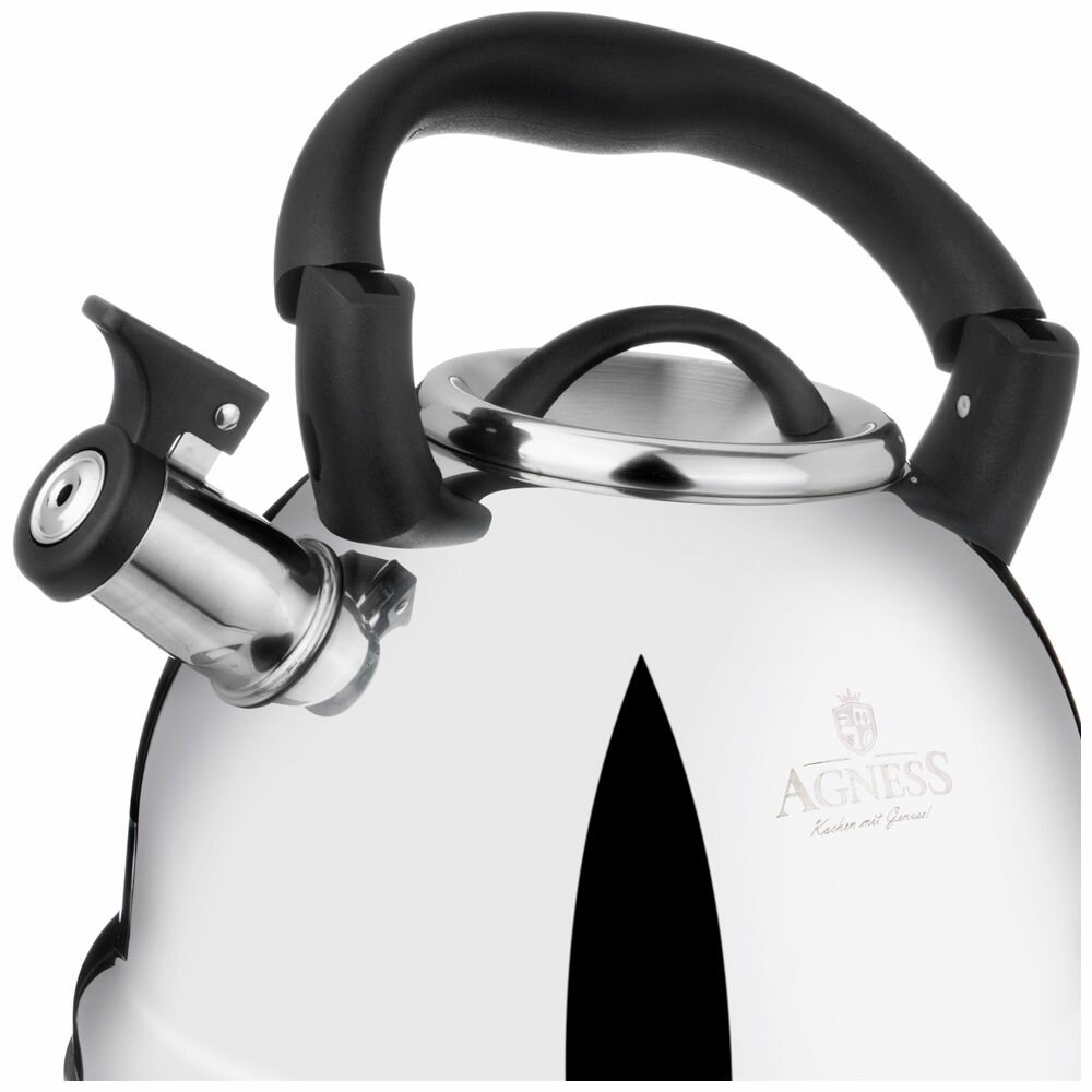 Чайник Agness, со свистком, 2,7 л, термоаккумулирующее дно, для всех видов плит