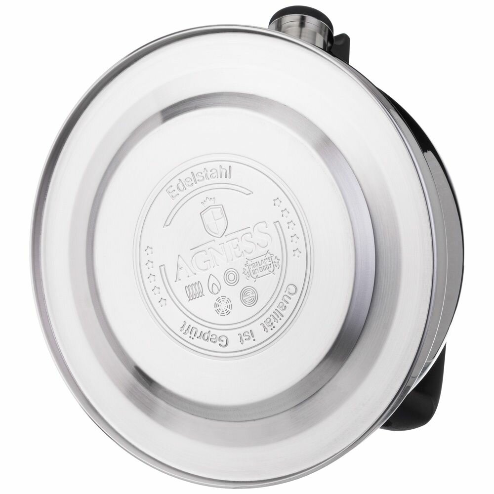 Чайник для плиты Agness со свистком 3 л, из нержавеющей стали, термоаккумулирующее дно, индукционное дно