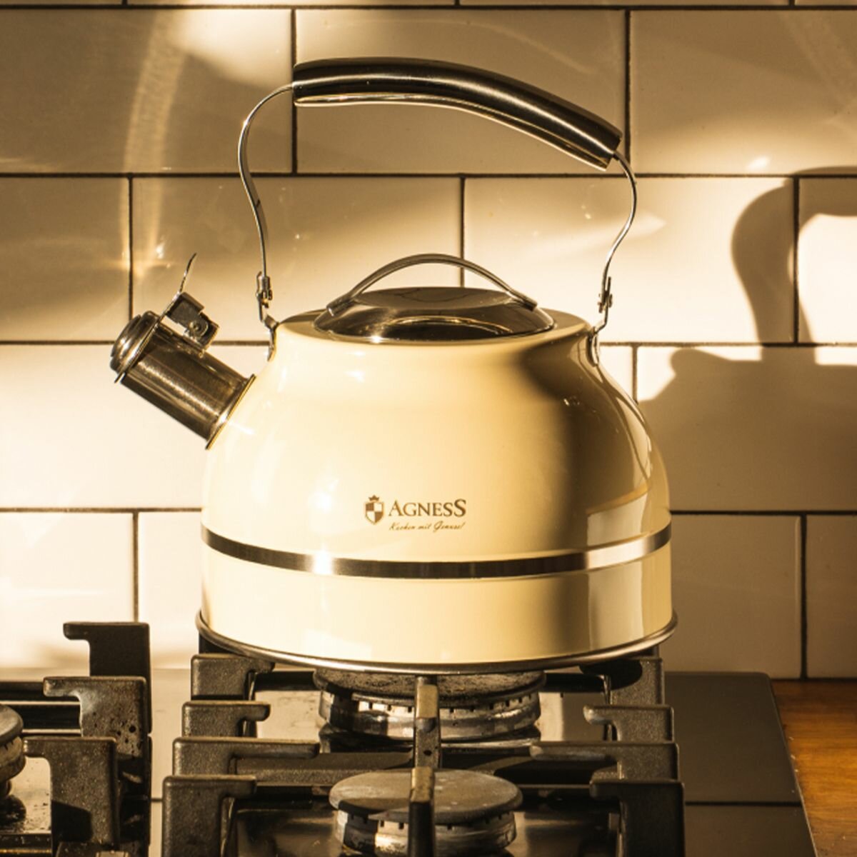 Чайник со свистком Agness 3л, индукционное капсульное дно, молочный, нержавеющая сталь