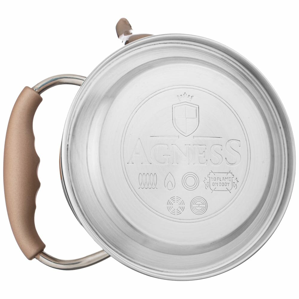 Чайник со свистком Agness 3л, индукционное капсульное дно, молочный, нержавеющая сталь