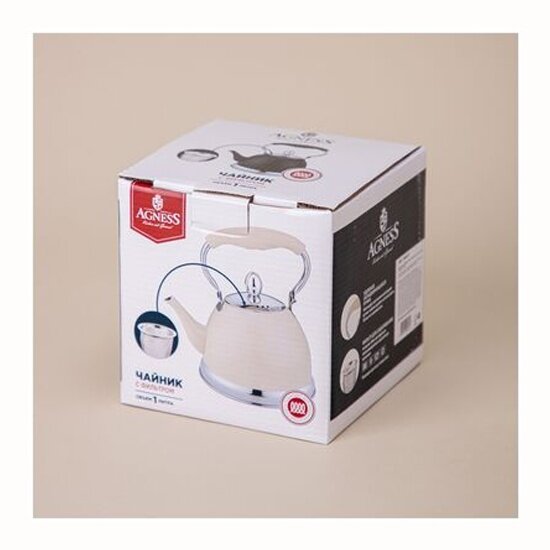 Чайник со свистком Agness 3л, индукционное капсульное дно, молочный, нержавеющая сталь