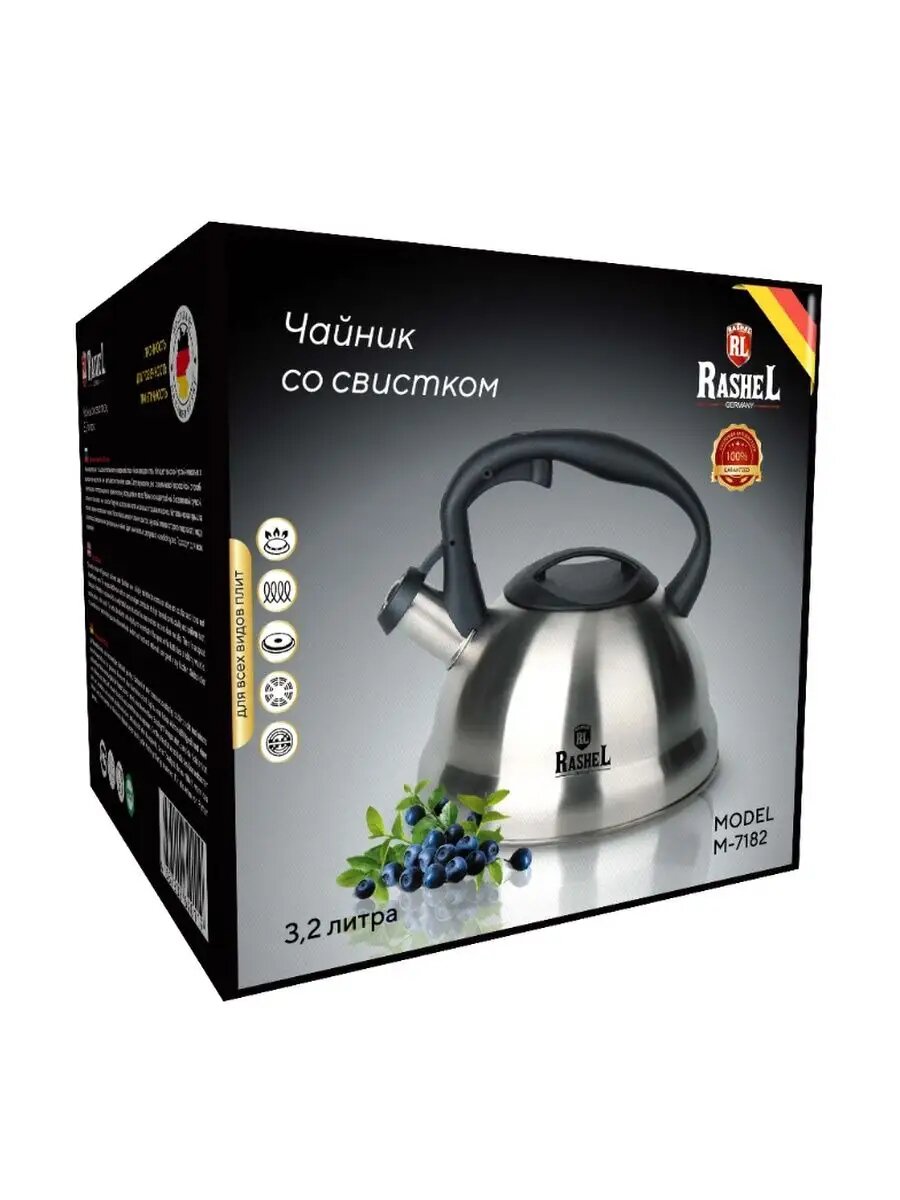 Чайник для газовых, индукционных, электрических и стеклокерамических плит RASHEL М-7905 3,2л со свистком