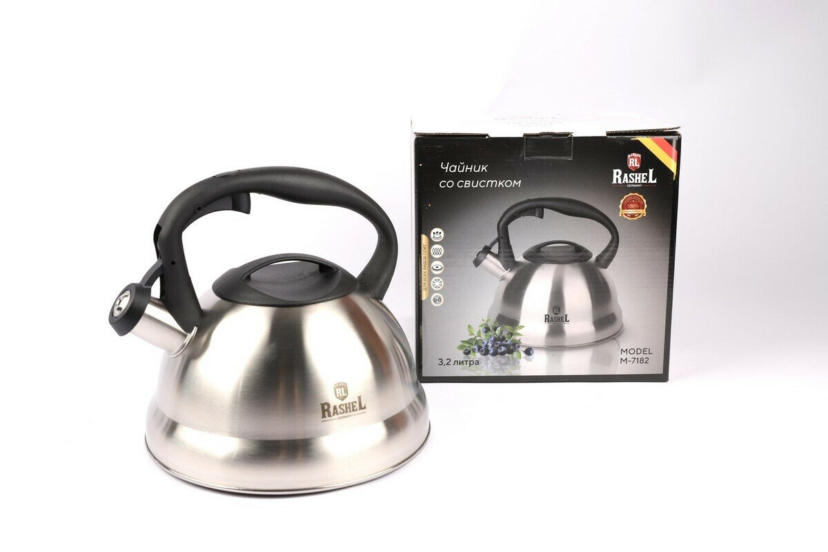 Чайник для плиты RasheL 3.2 л со свистком, из нержавеющей стали, ручка с механизмом