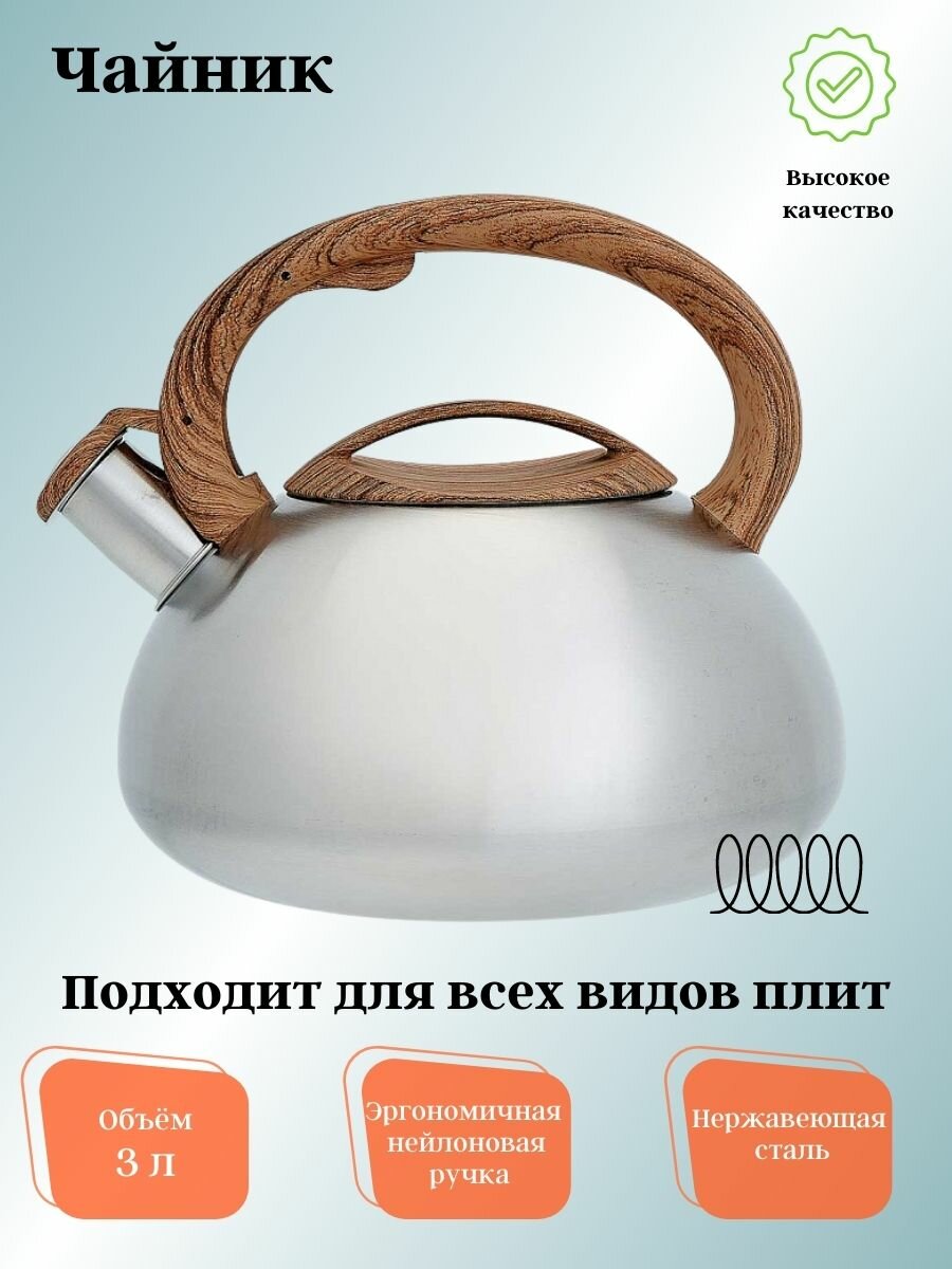 Чайник Webber со свистком из нержавеющей стали серебристый 3л