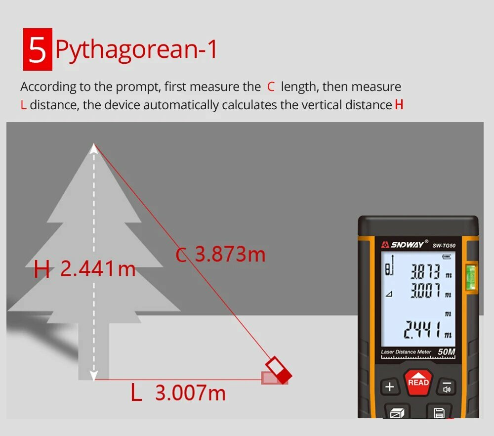 Цифровой лазерный дальномер Sndway TG50 с функциями самокалибровки