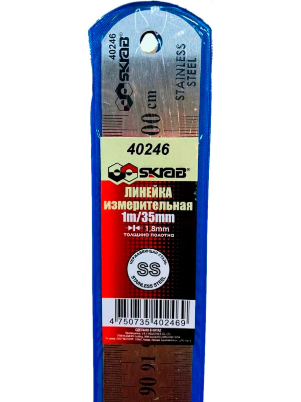 SKRAB Линейка металлическая 1000х35мм толщ.1,8мм SS нерж. 40246 интересное: