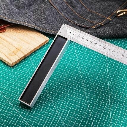 Угловая линейка стальная Deli DL302300 300мм Нержавеющая сталь + алюминиевое основание