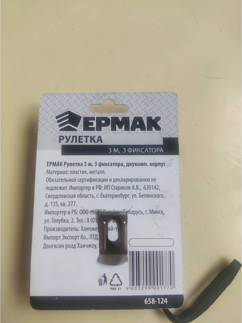 Ниже Вы можете прочитать отзывы на Рулетка ермак, 3 фиксатора, двукомп. корпус, 3м х 16мм, ознакомится с подробными характеристиками, посмотреть интересные обзоры и фотографии на Рулетка ермак, 3 фиксатора, двукомп. корпус, 3м х 16мм.