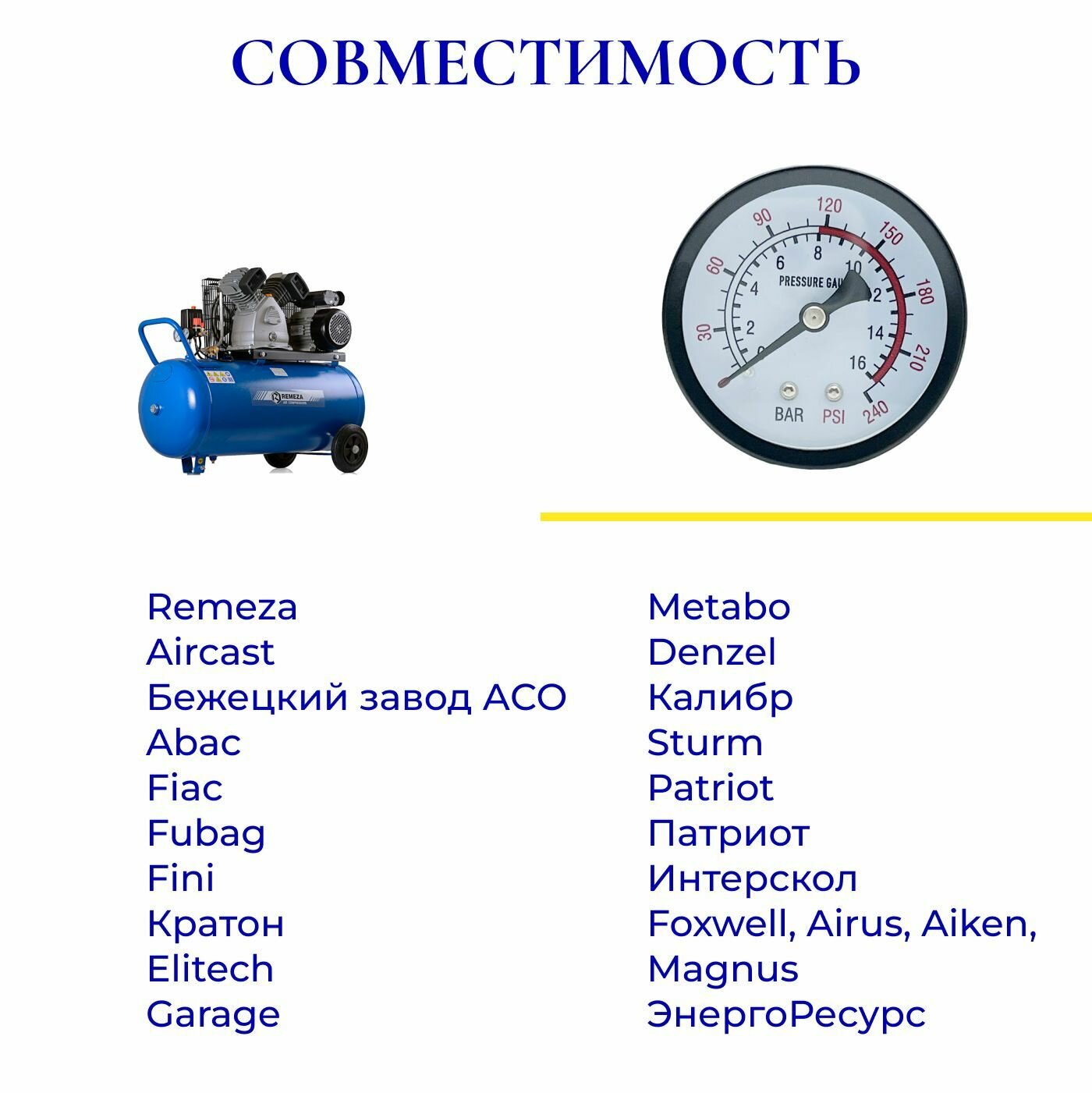 Манометр G-1/4, 0-1,6 мра (резьба сзади) для воздушного компрессора