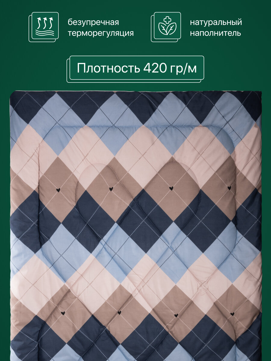 Одеяло "Сибирь" Евро, 200 х 220, теплое зимнее, Овечья шерсть, синий ромб интересное:
