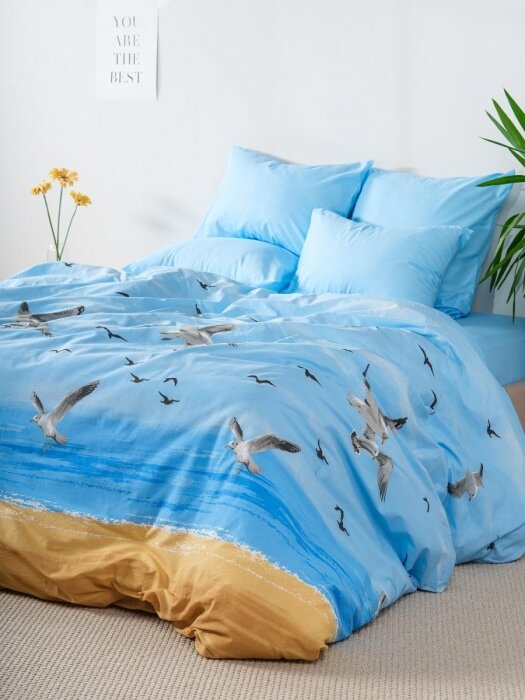 Постельное белье 1 5 спальное Ночь Нежна, Пляж, 2 наволочки 50х70, ткань бязь, 100% хлопок