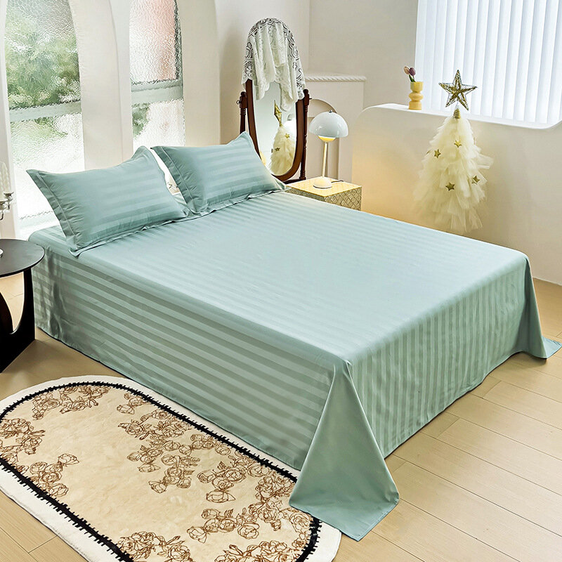 Постельное белье евро 2-спальное зеленый BorisMency/ Страйп сатин / простынь 215x230, пододеяльник 200x220, наволочки 50x70-2, 70x70-2