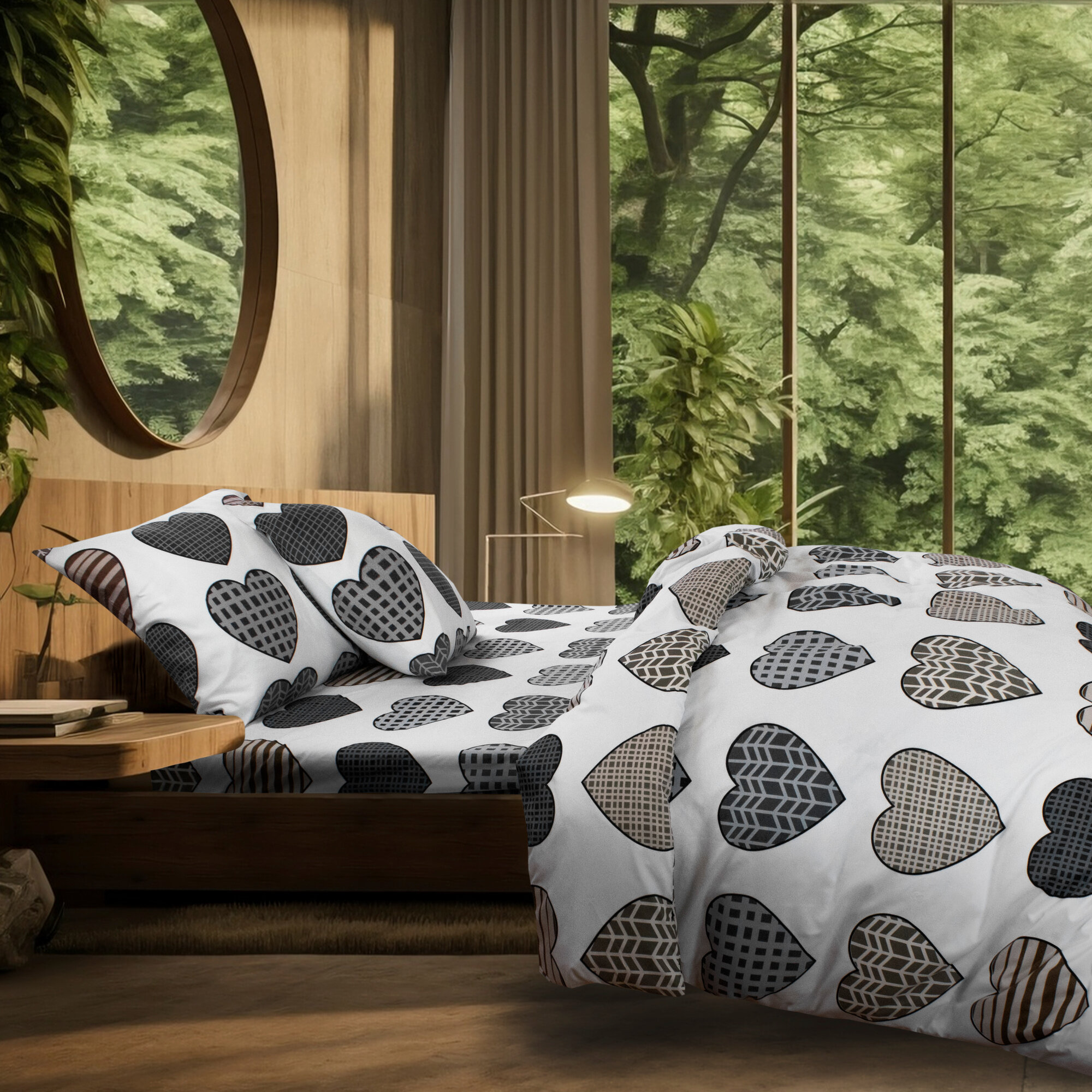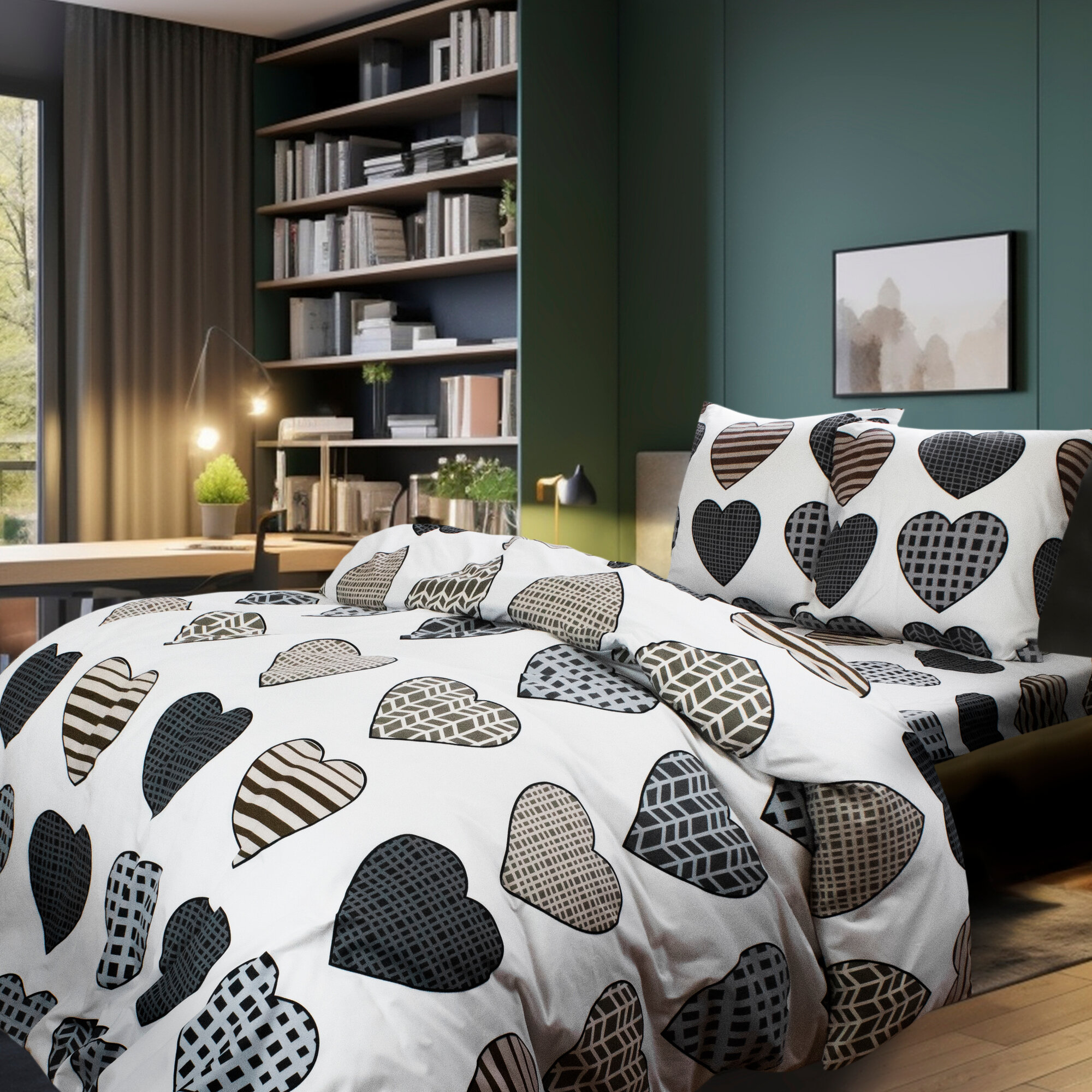 Постельное белье семейное с сердечками Cleo Art Color комплект с двумя пододеяльниками