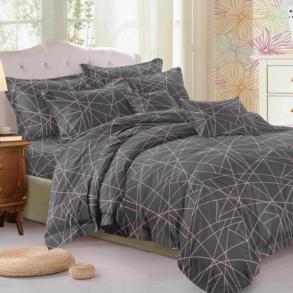 Комплект постельного белья из полисатина 091-AC Cleo (темно-серый), Семейный (наволочки 50х70 и 70х70)