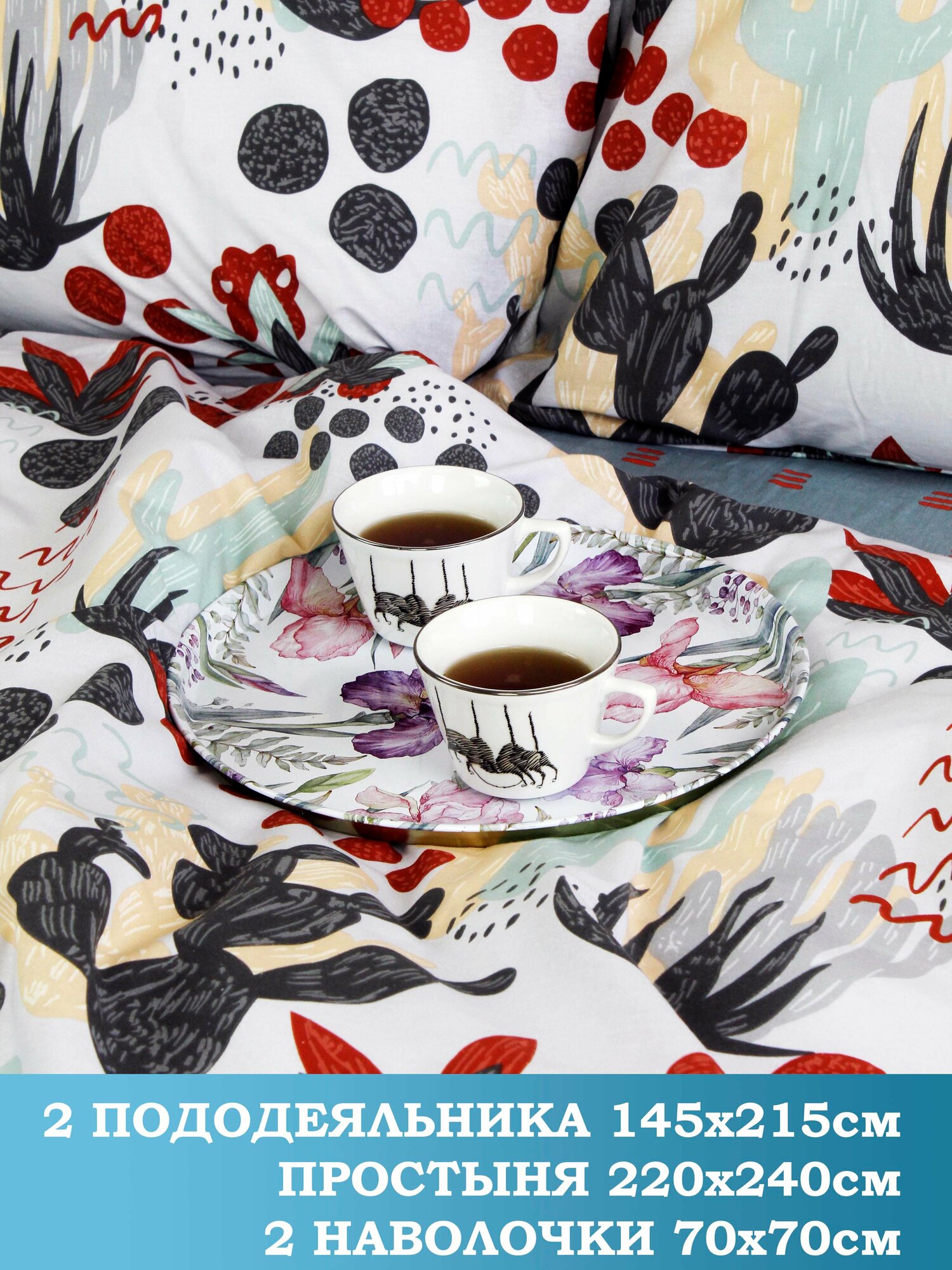 Постельное белье евро с кактусами Cleo Pure cotton комплект хлопок поплин