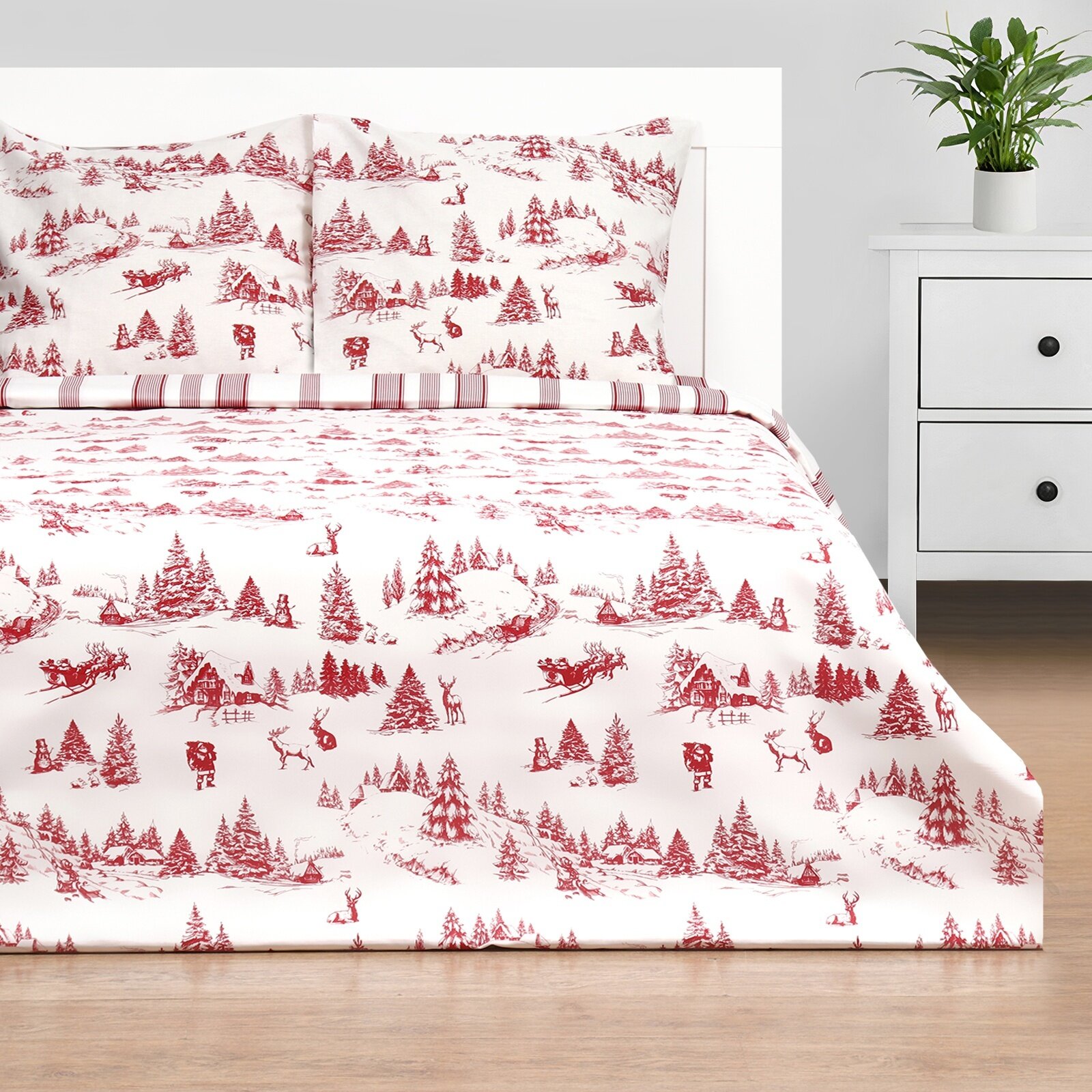 Постельное белье Евро Новогодний лес 200*217 см, 240*220 см, 70*70 см - 2 штуки