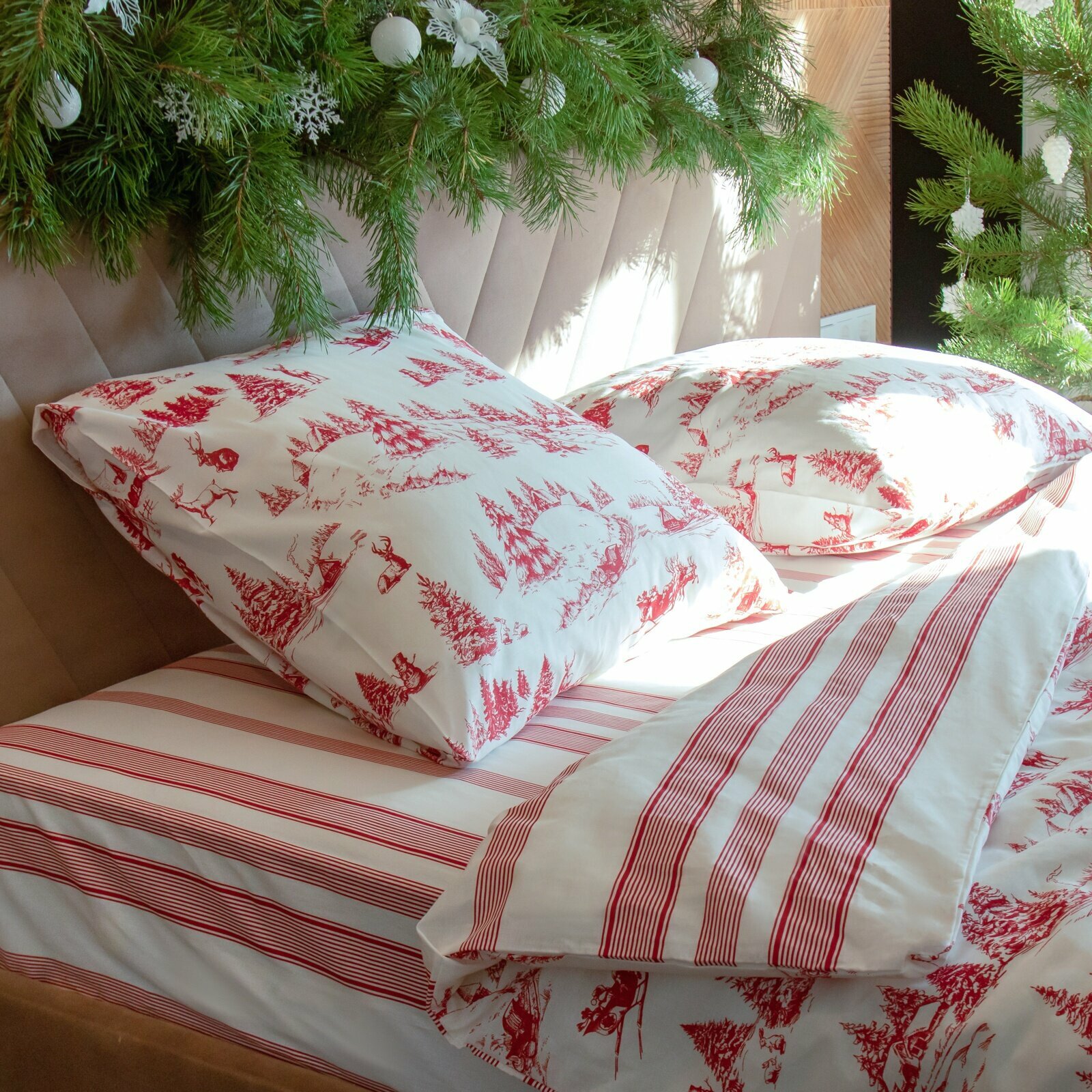 Постельное белье Евро Новогодний лес 200*217 см, 240*220 см, 70*70 см - 2 штуки
