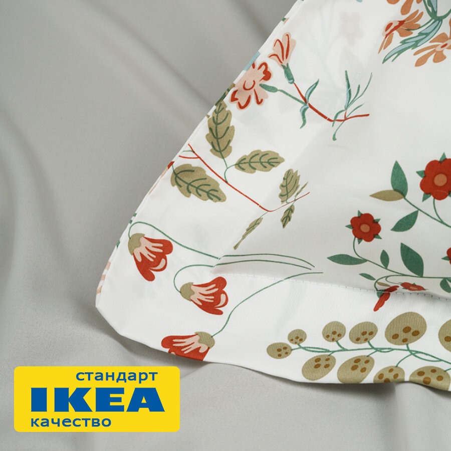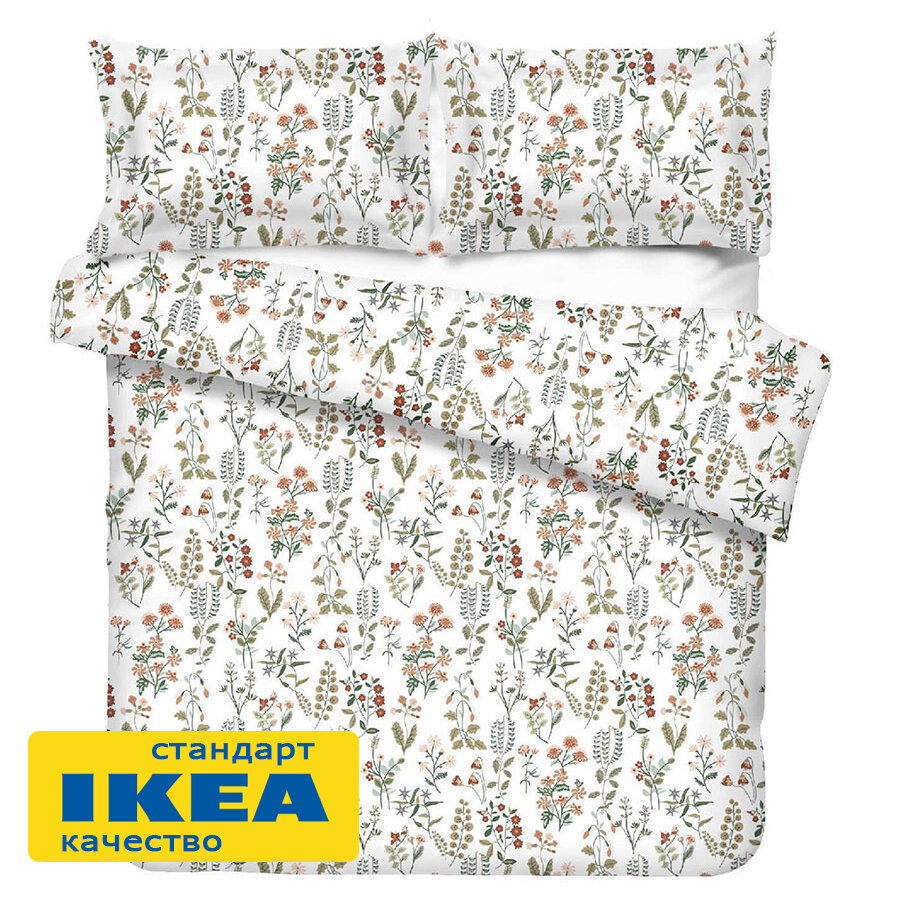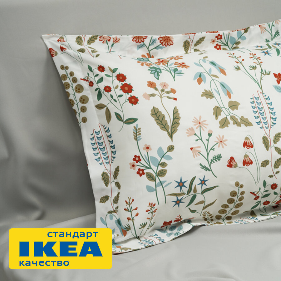 Постельное белье 1.5 платан (икеа платтмал) 150x200/50x70 цветочный орнамент/белый, сатин KL-90519762