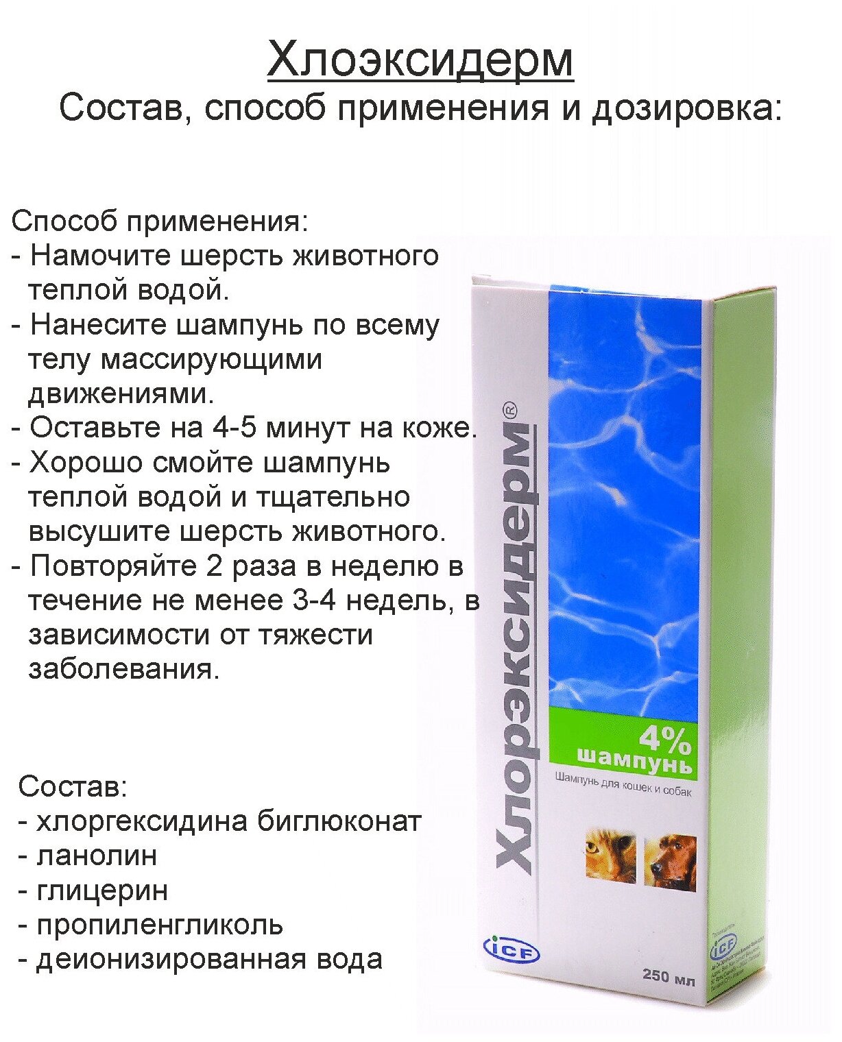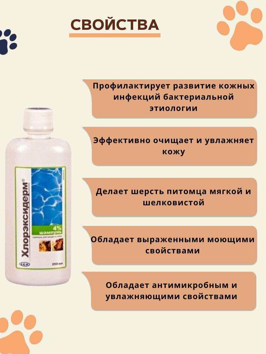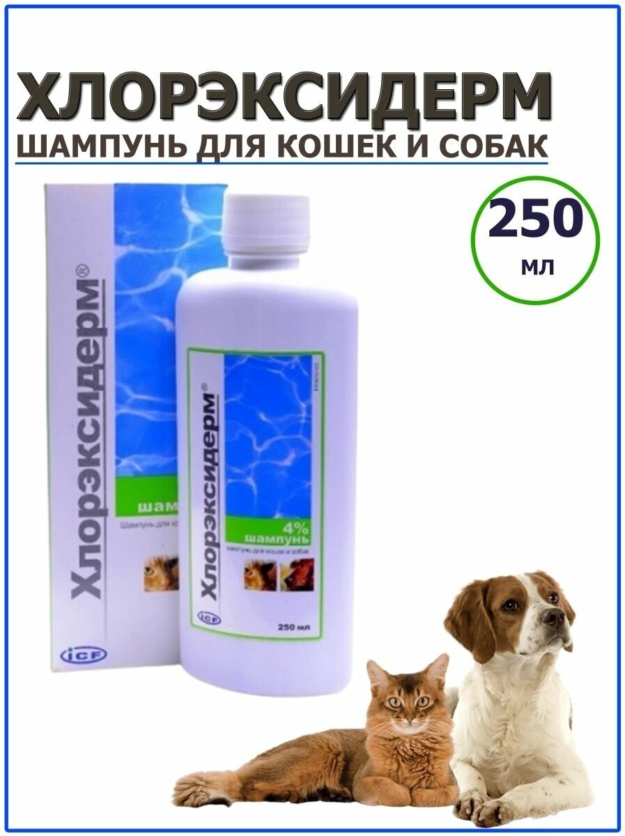 Шампунь -шампунь ICF Хлорэксидерм для собак и кошек с хлоргексидином 4% , 250 мл , 250 г интересное: