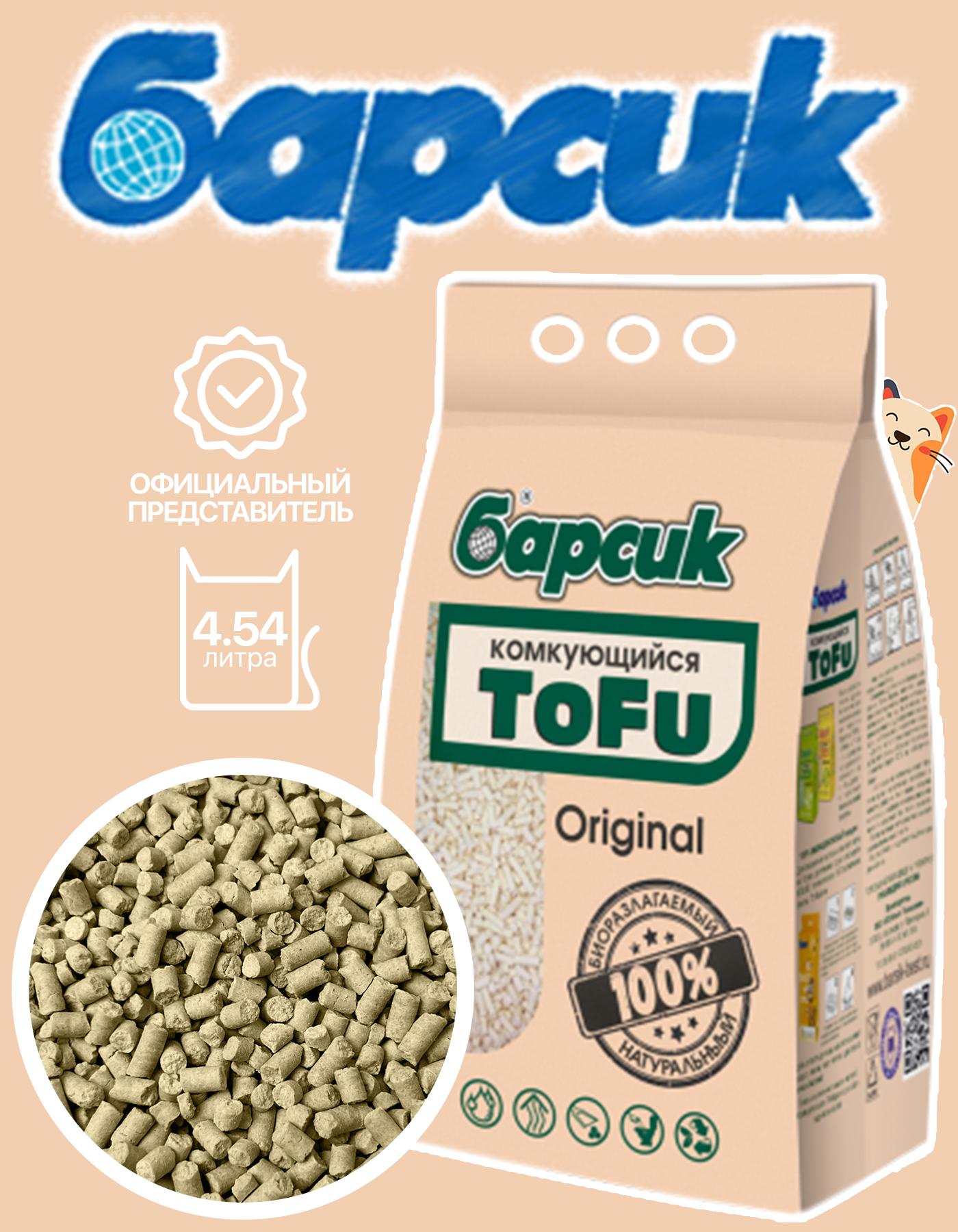 Комкующийся наполнитель Барсик TOFU Original, 4.5л, 1 шт.