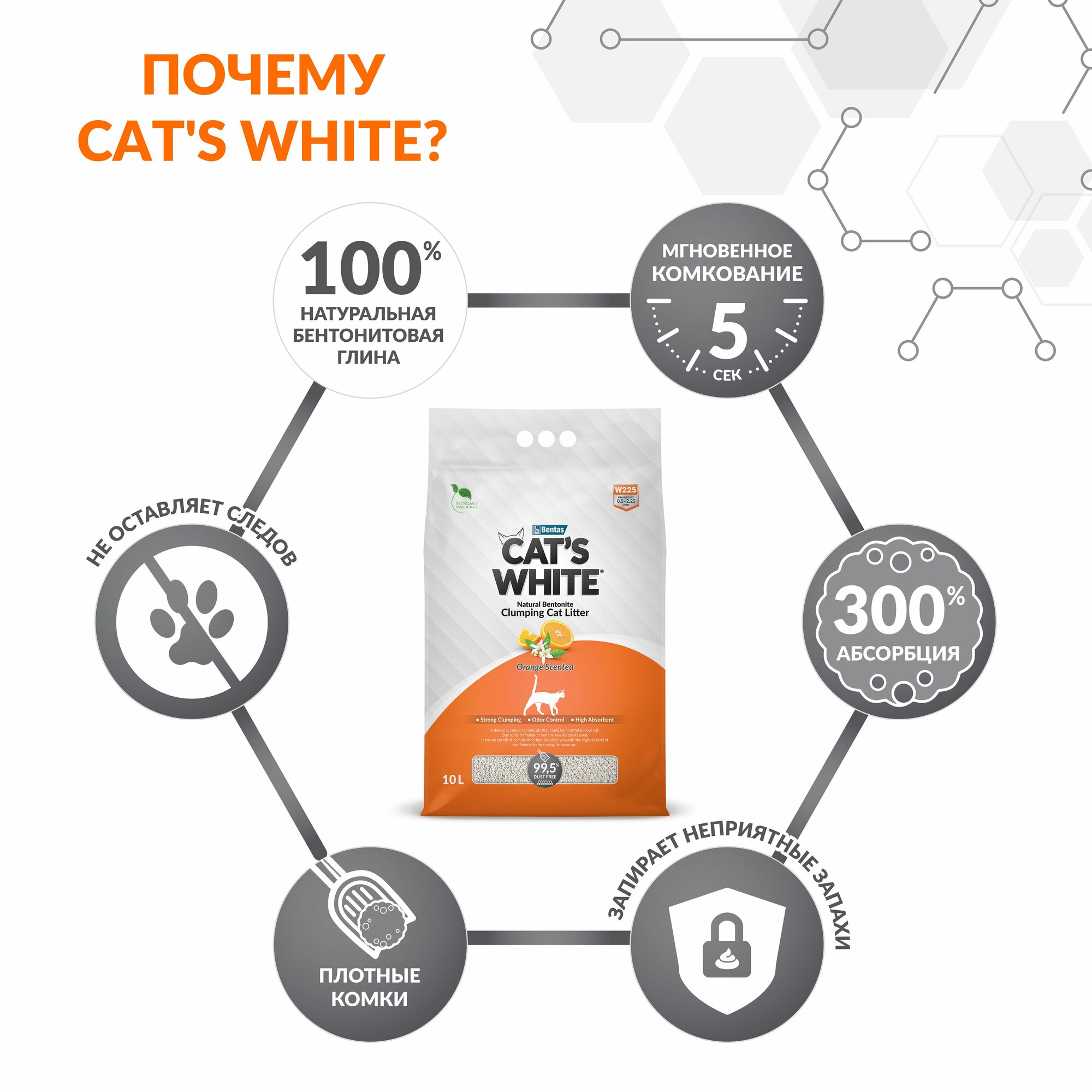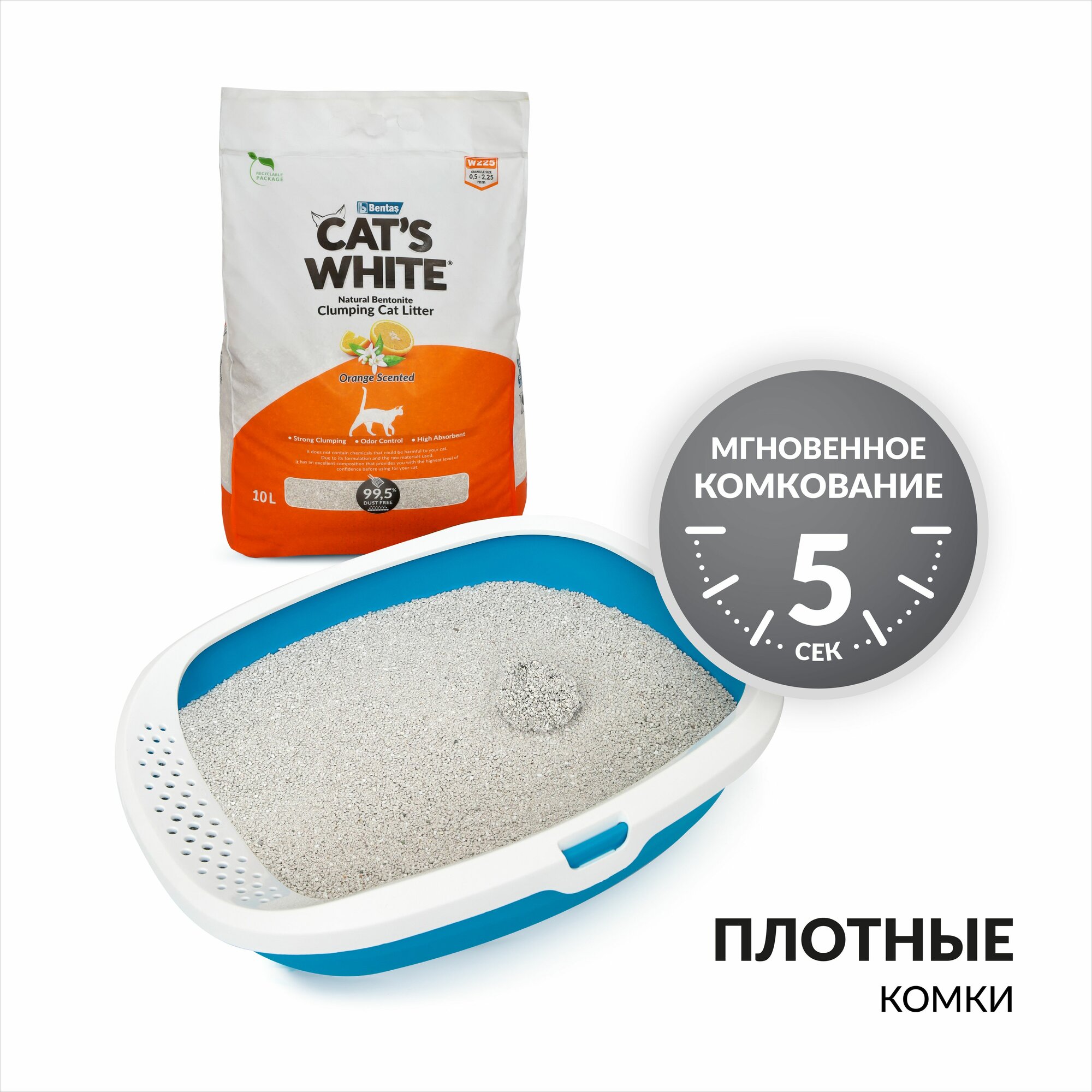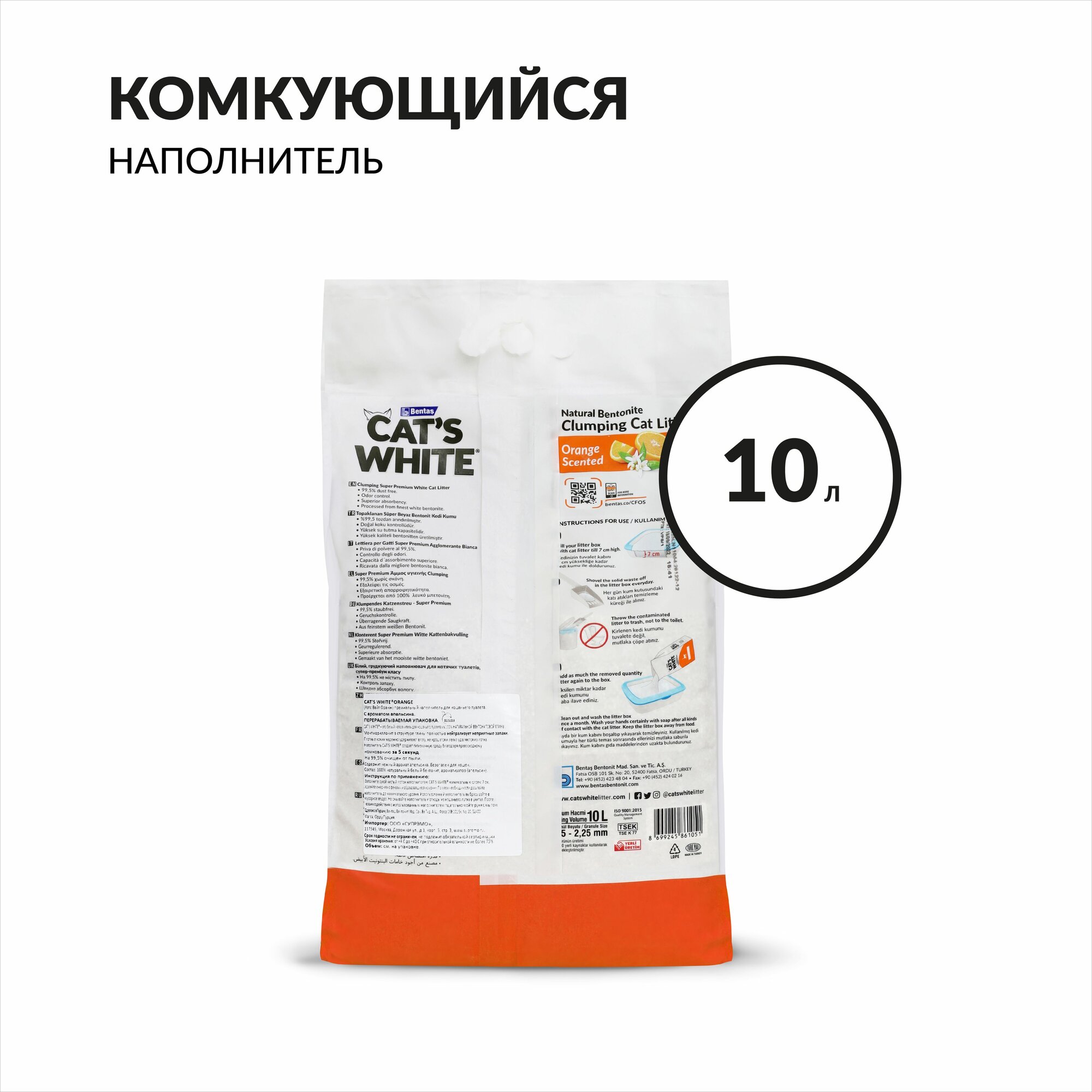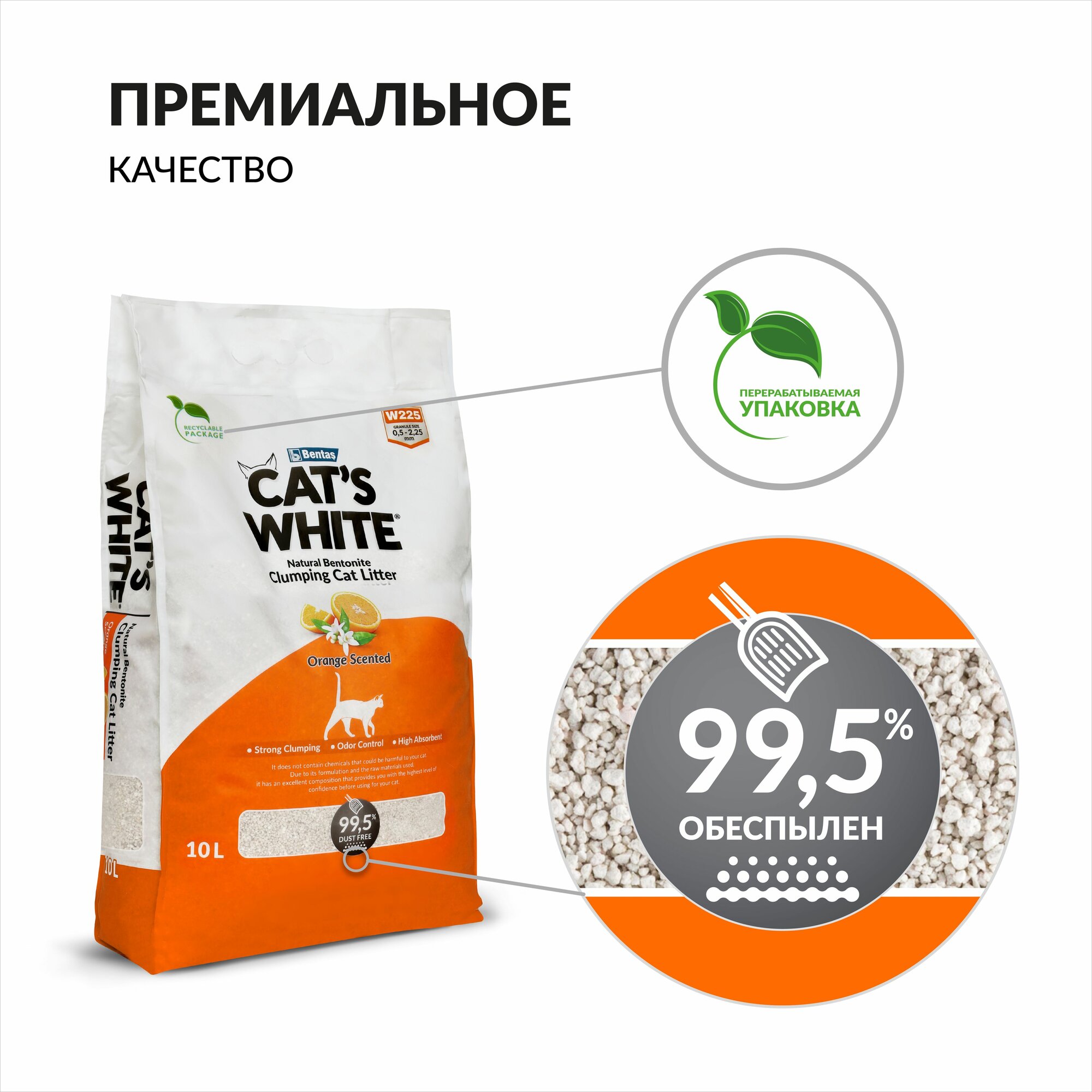 Купить Наполнитель для кошачьих туалетов Cat's White Orange комкующийся, бентонитовый с ароматом апельсина (10л)