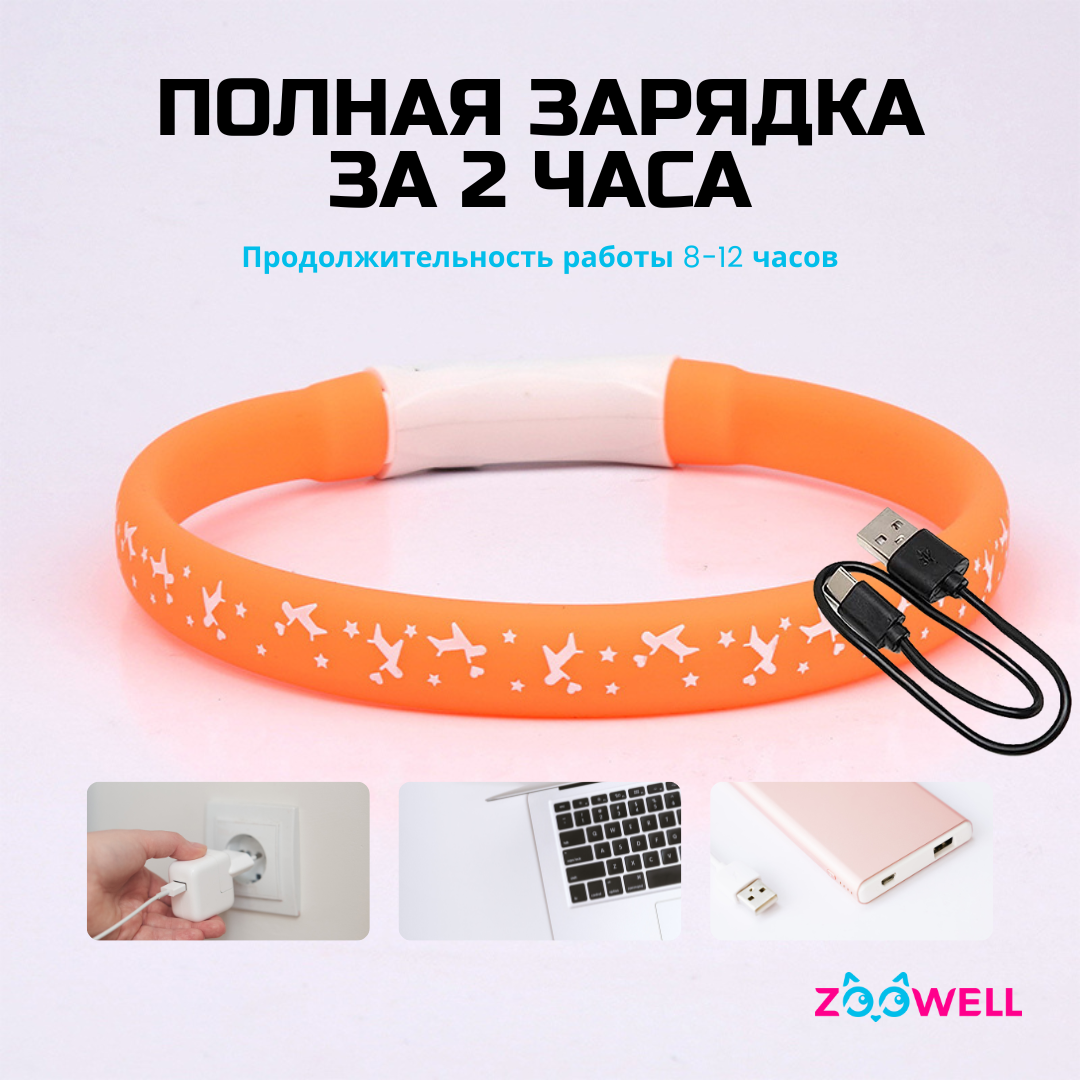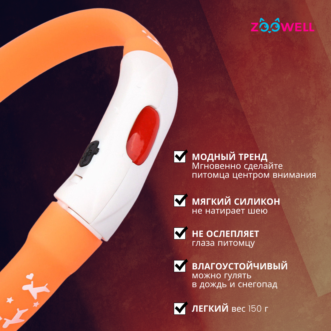 СохранитьОшейник для собак светящийся LED 55 см оранжевый, ZOOWELL, водонепроницаемый интересное: